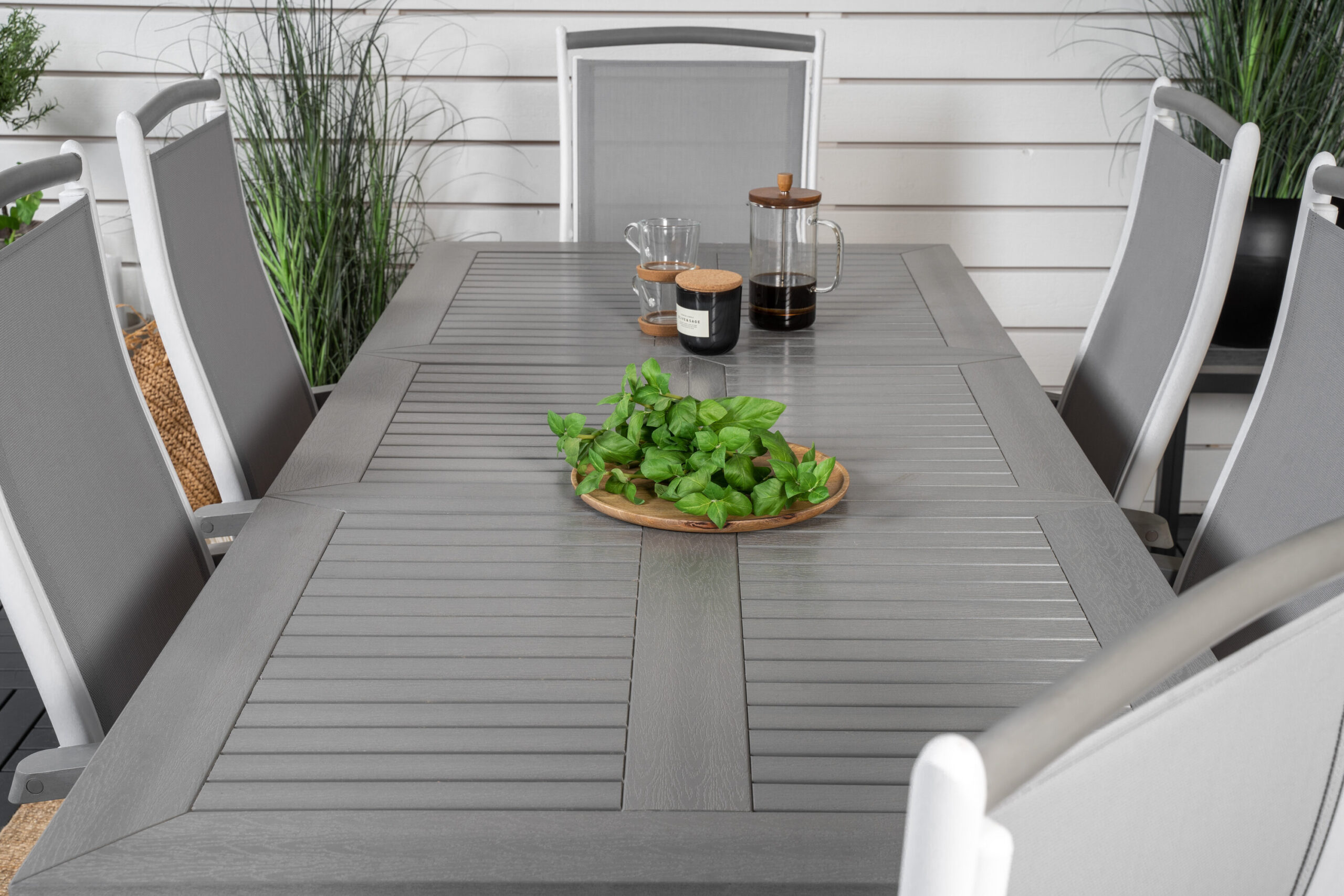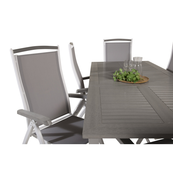 Att köpa en färdigkomponerad matgrupp är både trendsäkert och praktiskt! Här kombinerar vi vårt matbord Albany tillsammans med våra sittvänliga matstolar i serien Albany med fällbara ryggstöd. Låt din uteplats präglas av din nya iögonfallande matgrupp som passar lika bra till en solig lunch som till härliga festmåltider.