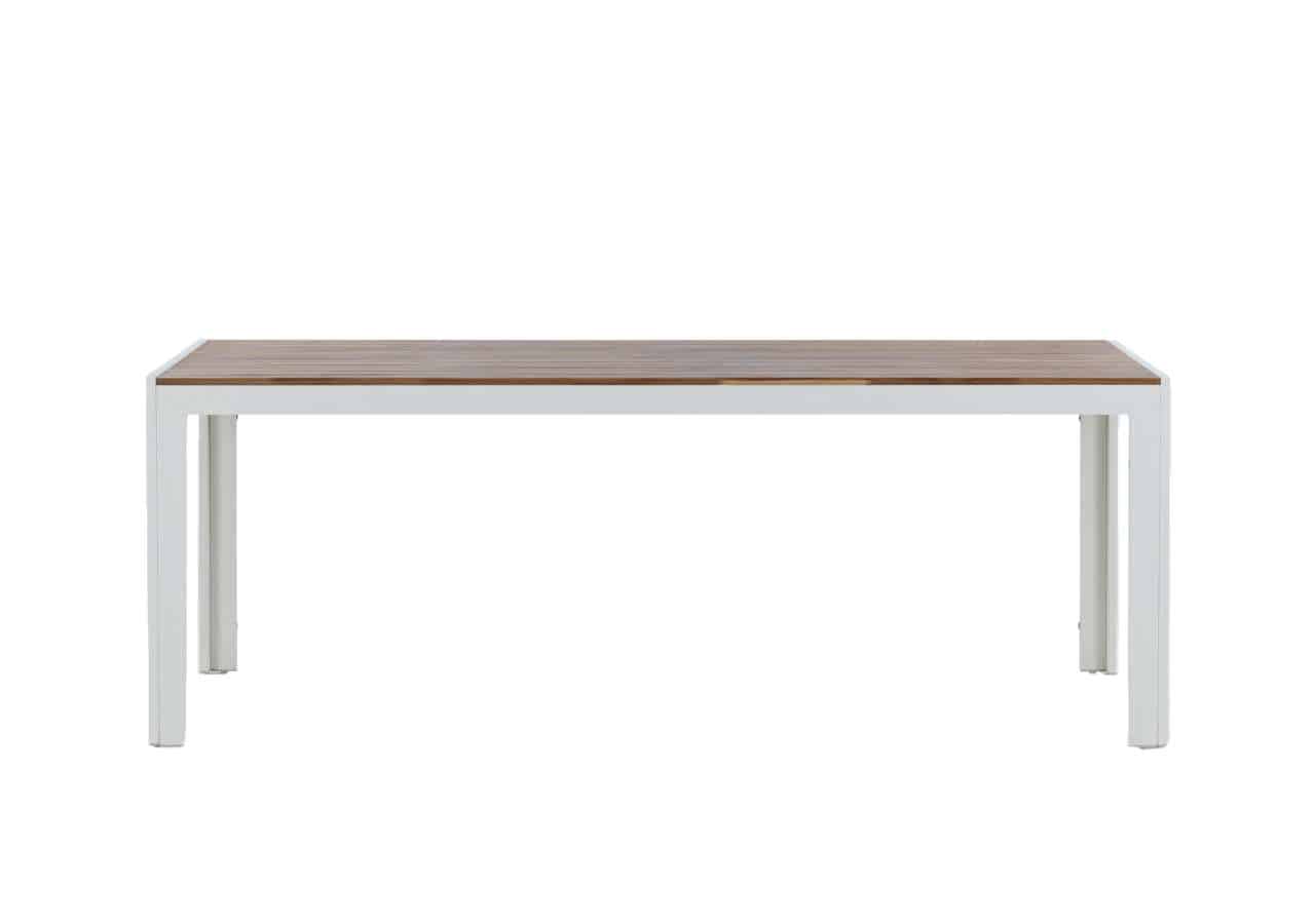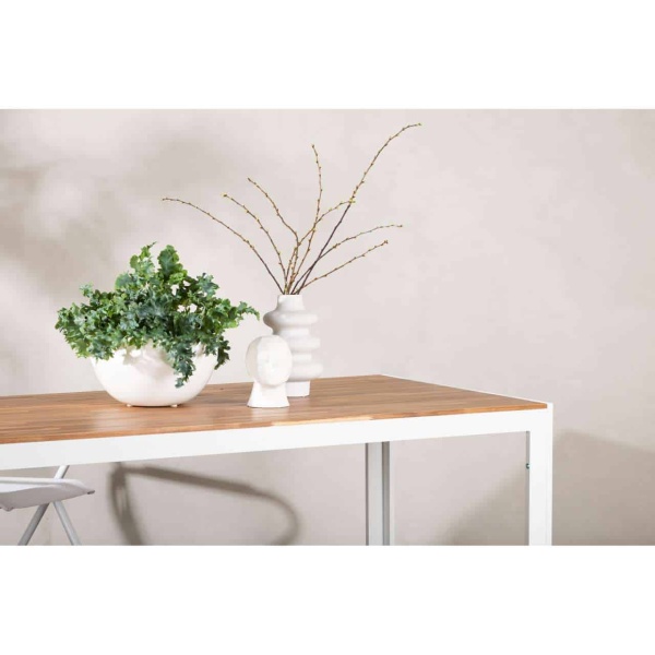 Matbord Bois imponerar med sina raka nordiska former och klassiska design! Bordsskivan är i dekorativ akacia och bordsbenen i stilren vit metall. Matcha med ett par läckra matstolar så får du en komplett matgrupp att samla vänner och familj kring – gör er redo för måltider utomhus och njut av trivsamt sällskap i sommar!