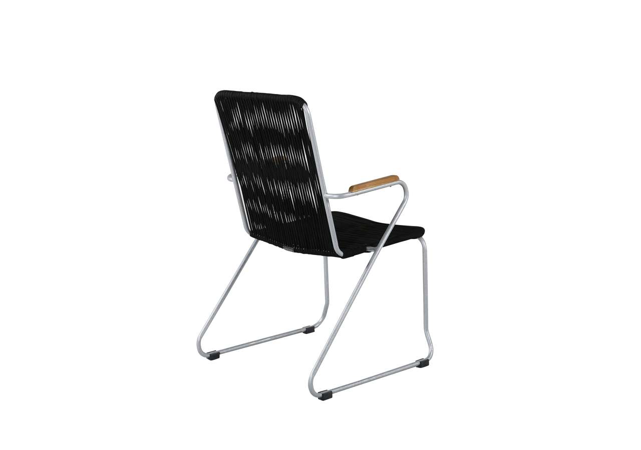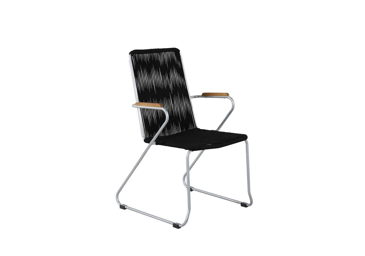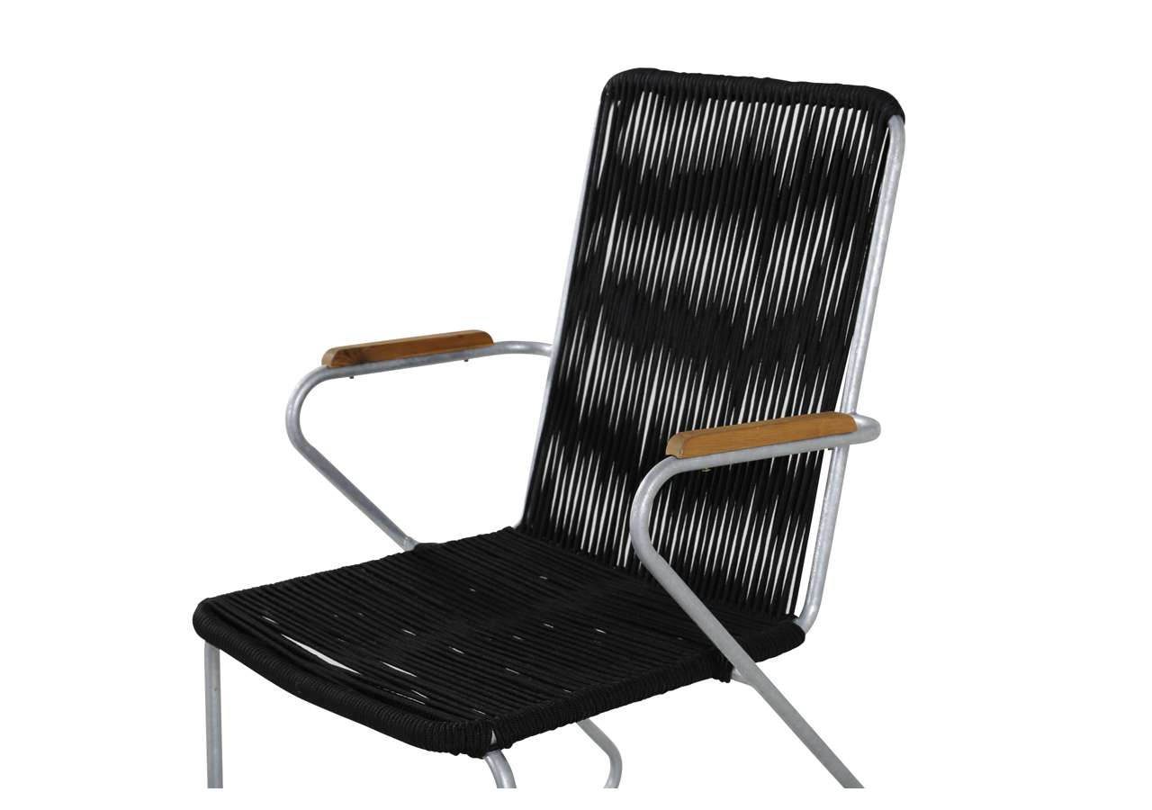 Modern, snygg och slitstark – en trendig stol med alla rätt! Bois har en bekväm design i zinkkonstruktion, sits i svart rep och dekorativa armstöd i teak. En möbel som bjuder in till många trivsamma stunder! Njut lite extra av härliga måltider utomhus och möblera altanen i en stilren anda. Stolen är stapelbar.