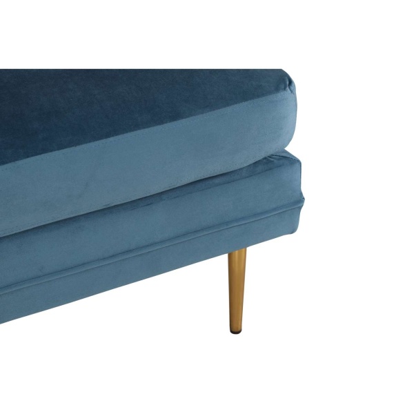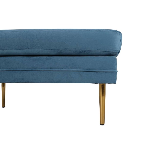 Sätt tonen i vardagsrummet med en sammetslen blå sittpuff som drar blickarna till sig! Sittpuffen Boom kombinerar rak nordisk design med mjuka former och trendigt helhetstänk. Den gör sig lika bra ensam som en läcker stilikon som tillsammans med vår fåtölj i samma serie. Tillverkad i smäcker blå kulör i sammet och en ram av trä och metall. Benen är dekorativt mässingsfärgade i pulverlackerad metall och stilrent smala. Förhöj inredningskänslan i ditt hem! Puffens mått: 90 cm, bredd: 70 cm, höjd: 49 cm.