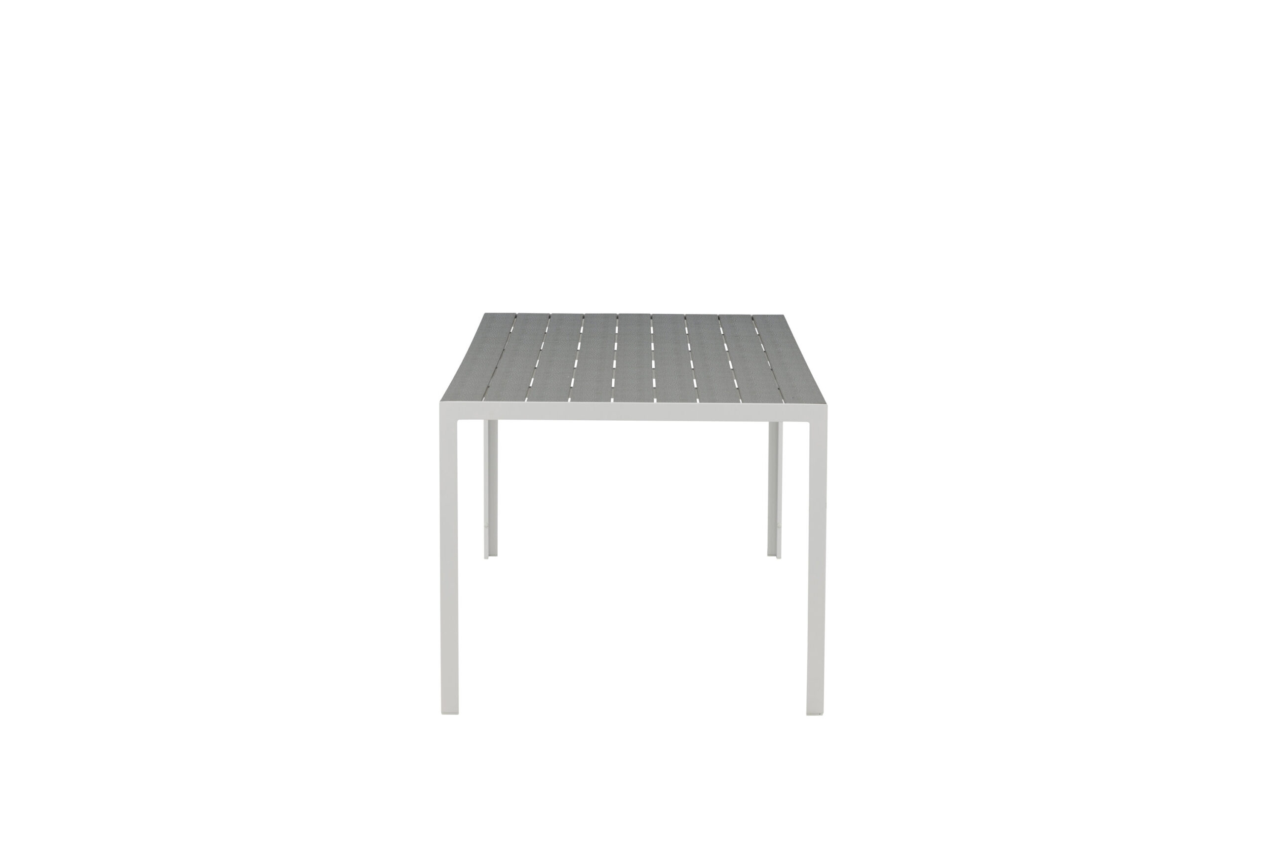 Smart, snyggt och slitstarkt – ett rektangulärt matbord med alla rätt helt enkelt! Break har raka former i klassisk nordisk design med en bordsskiva i grå polywood och bordsben i vit aluminium. Materialen är både hållbara och lätta i vikt så du enkelt kan flytta runt matbordet om det behövs. Gör dig redo före utelivet i sommar och njut av måltider utomhus!
