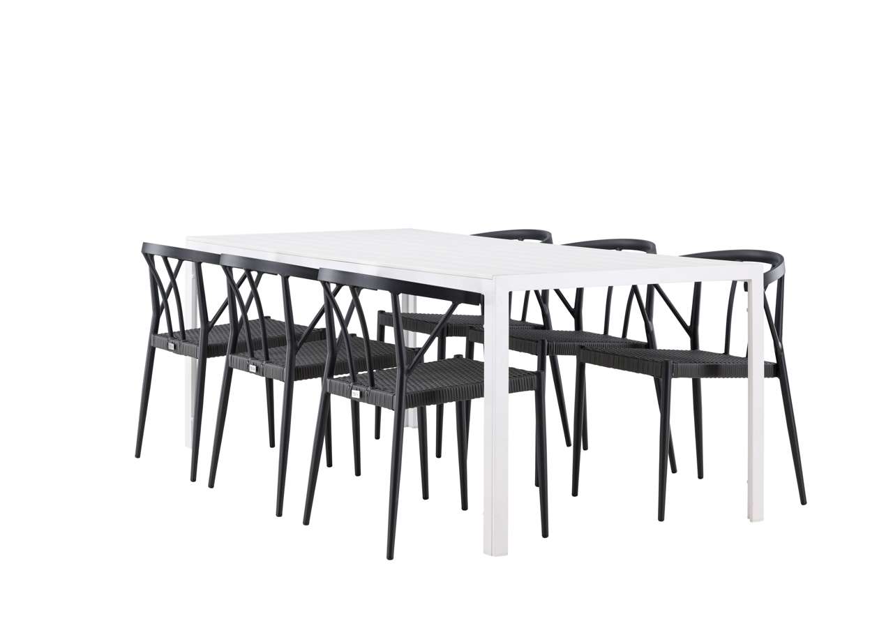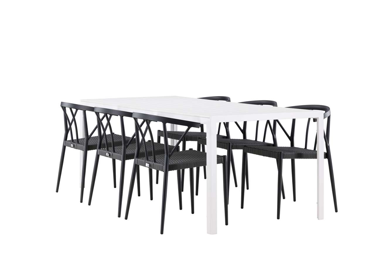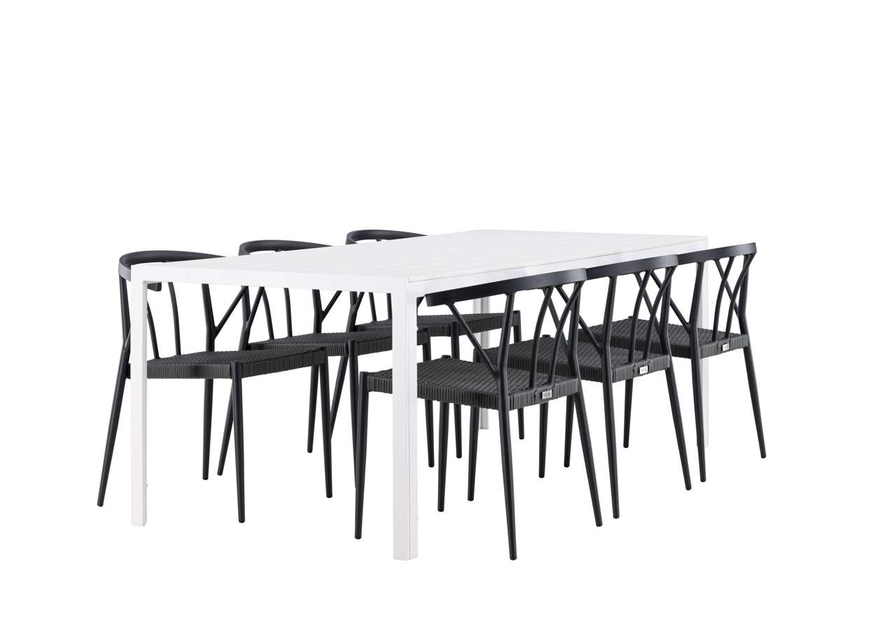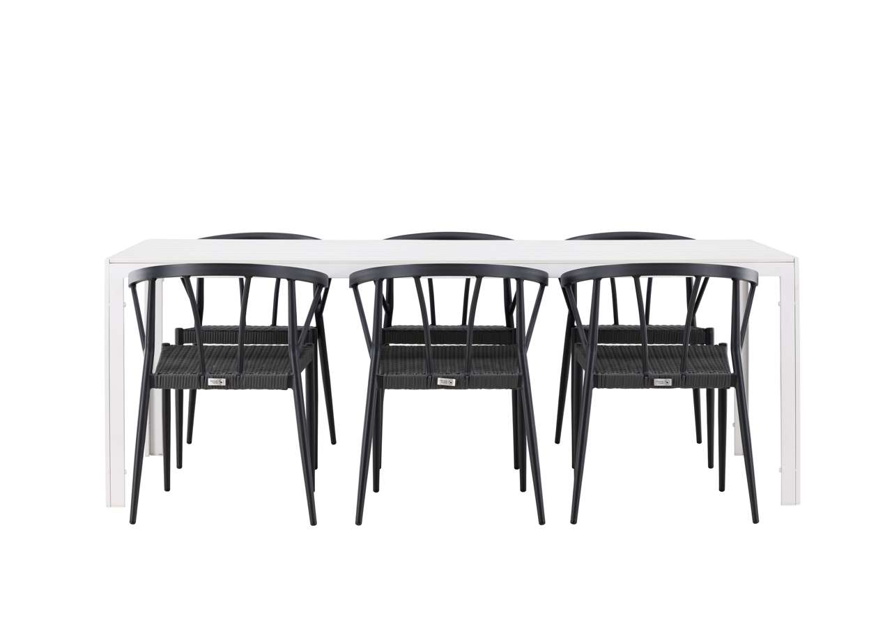 This dining set is ideal for outdoor use and serves as a style statement and interior detail with its impressive presence. With six chairs included, this set is complete to create memorable moments and elevate your outdoor space to a new level of style and comfort.