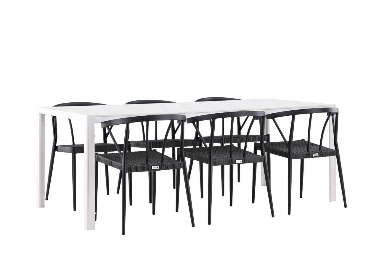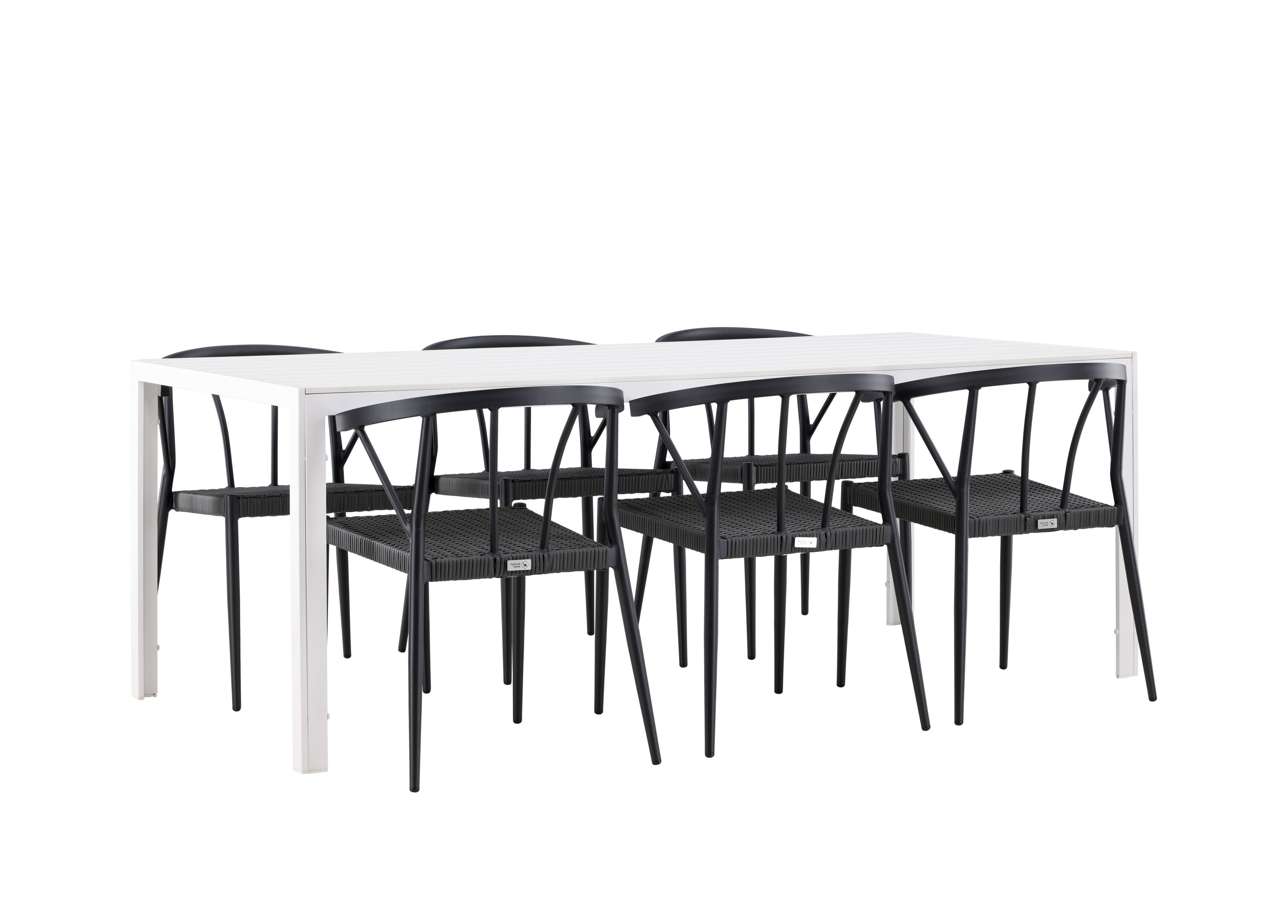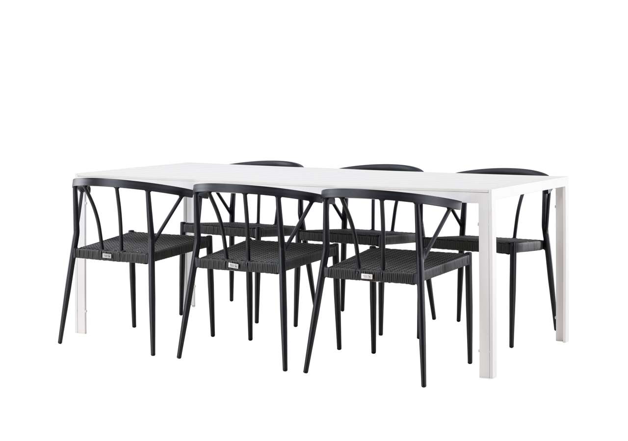The Break table is the centerpiece of this dining set. With a white tabletop made of aintwood material and an aluminum frame, it creates an impressive and sleek look. Measuring 205×75 cm, it offers plenty of space for six people, perfect for gathering loved ones for meals and conversations outdoors.