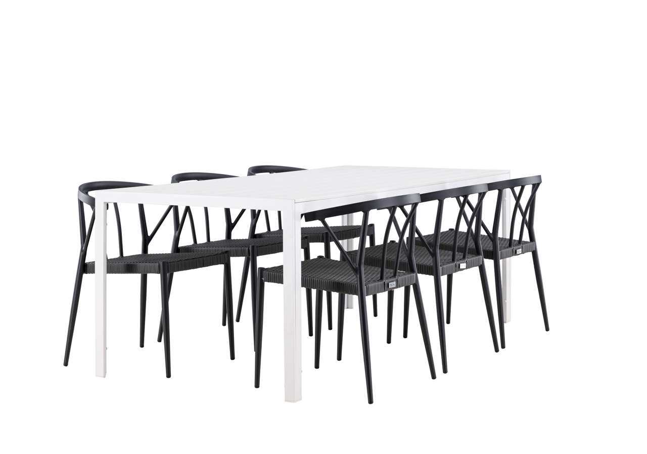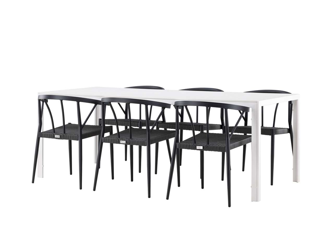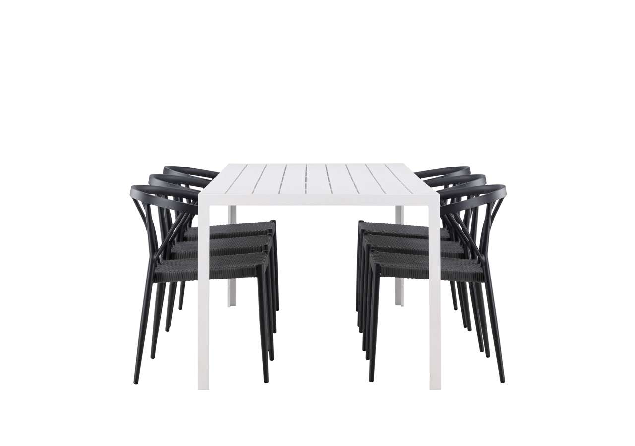 The Break table is the centerpiece of this dining set. With a white tabletop made of aintwood material and an aluminum frame, it creates an impressive and sleek look. Measuring 205×75 cm, it offers plenty of space for six people, perfect for gathering loved ones for meals and conversations outdoors.