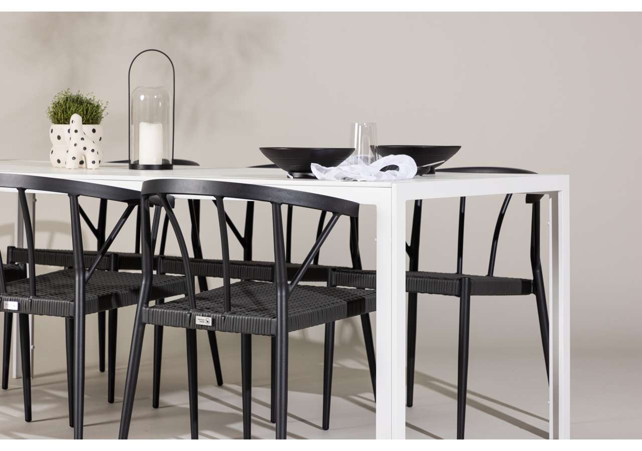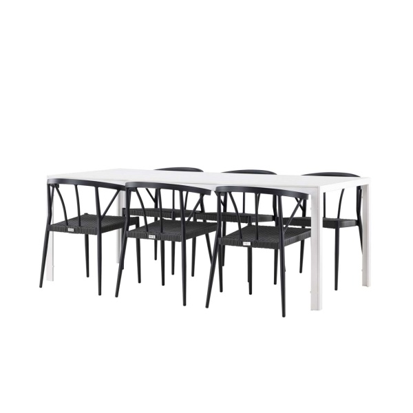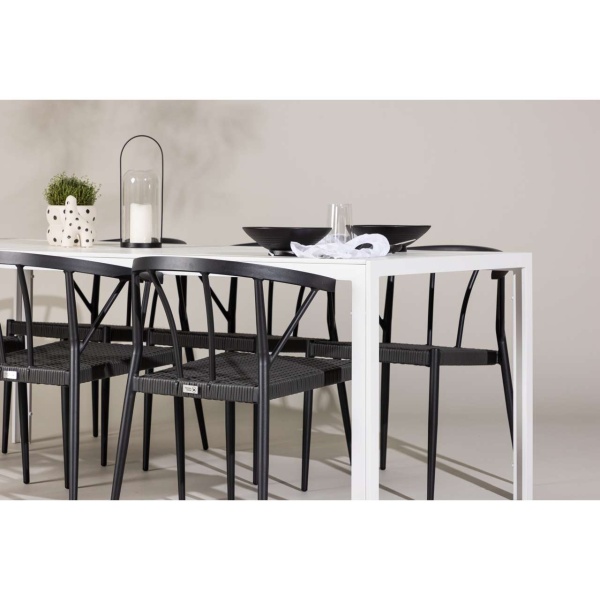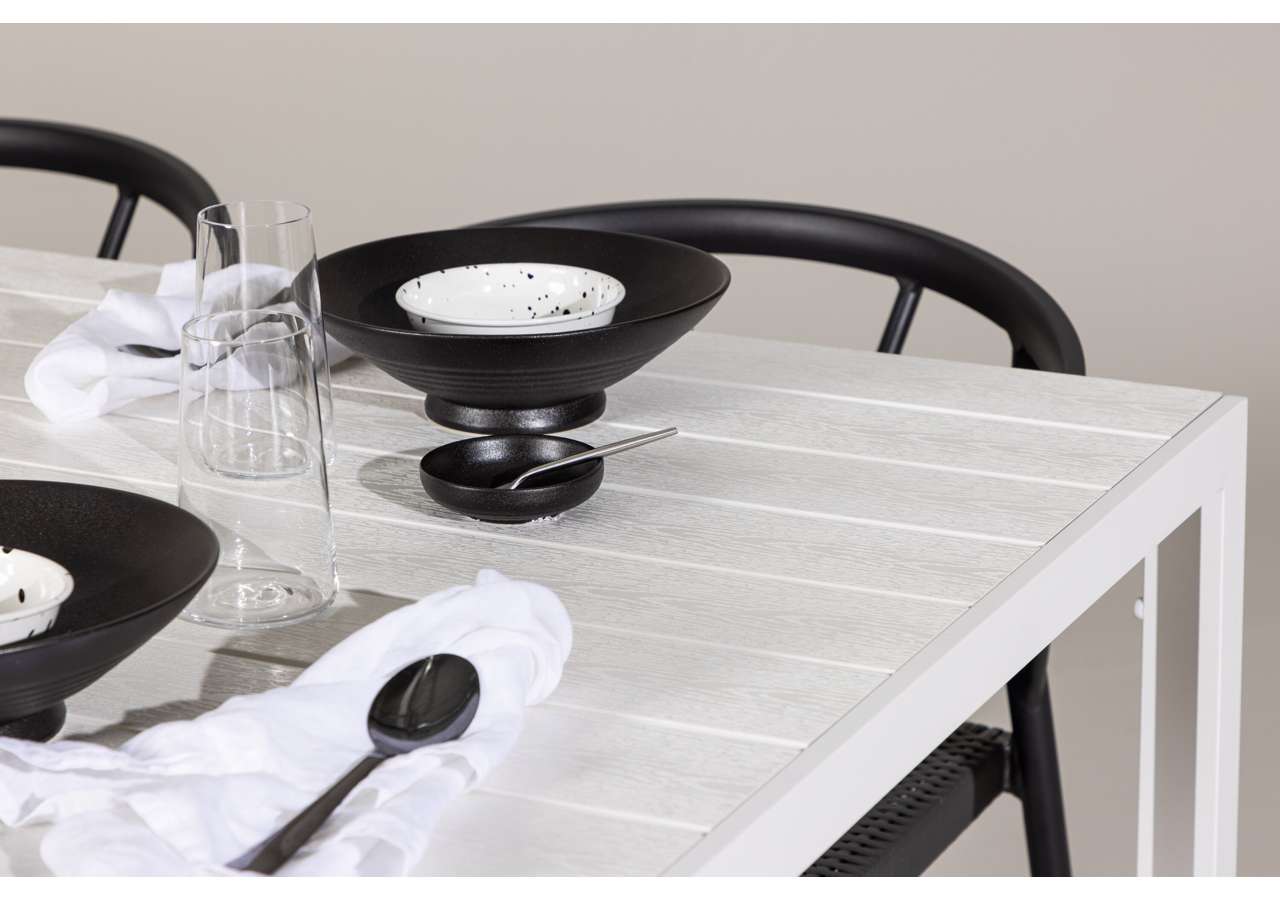 The Stina chairs combine elegance and comfort. With a black color and seats made of synthetic rattan material, they offer both style and comfort. The chairs’ frame is crafted from aluminum material, providing stability and a modern touch to the overall design.