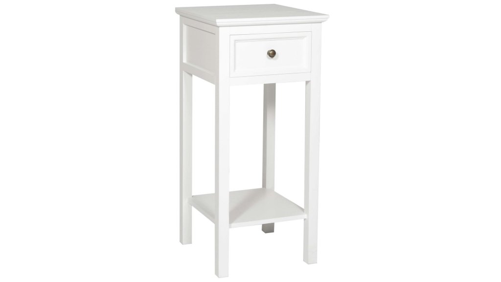 Bristol är ett elegant och tidlöst sängbord från NFG. Stommen är tillverkad i en matt vit antikbetsad träfinish som ger en sliten och vintageinspirerad look. Bristol levereras färdigmonterad för enkel användning. Sängbordet har en praktisk låda på ovansidan och en hylla längst ner för extra förvaring. Finns i både svart och vitt utförande för att passa din personliga stil.