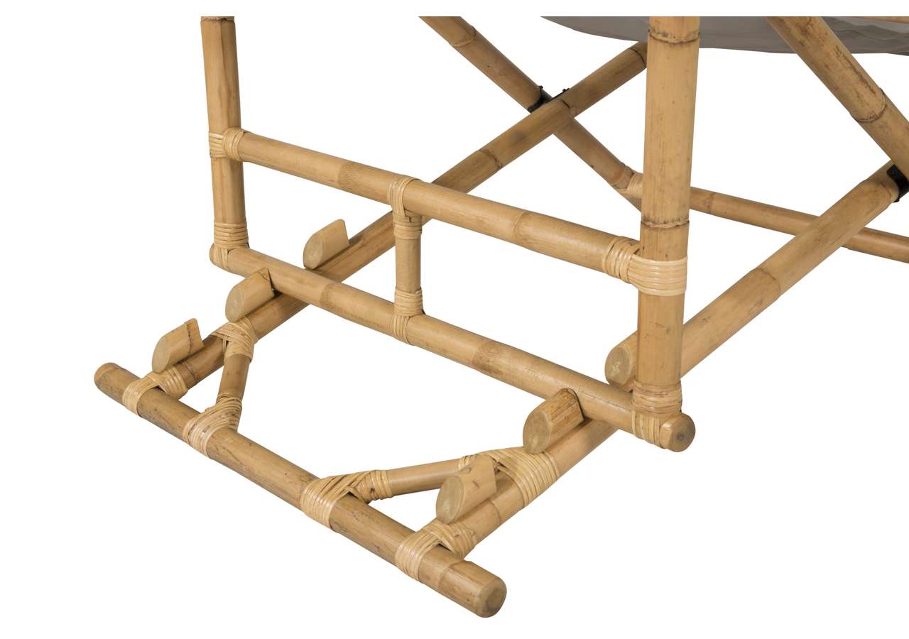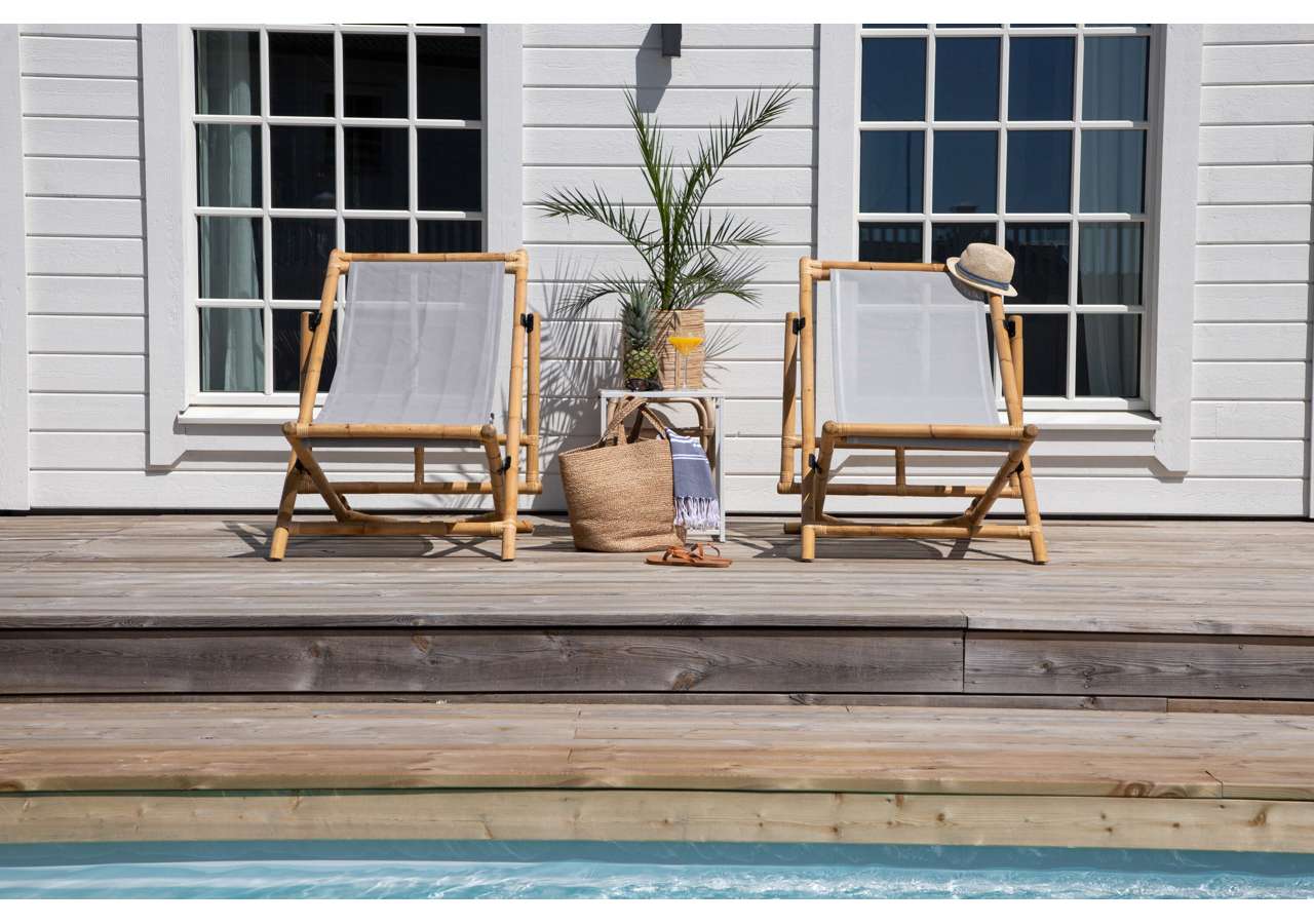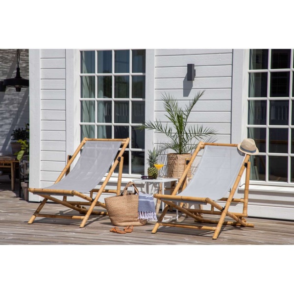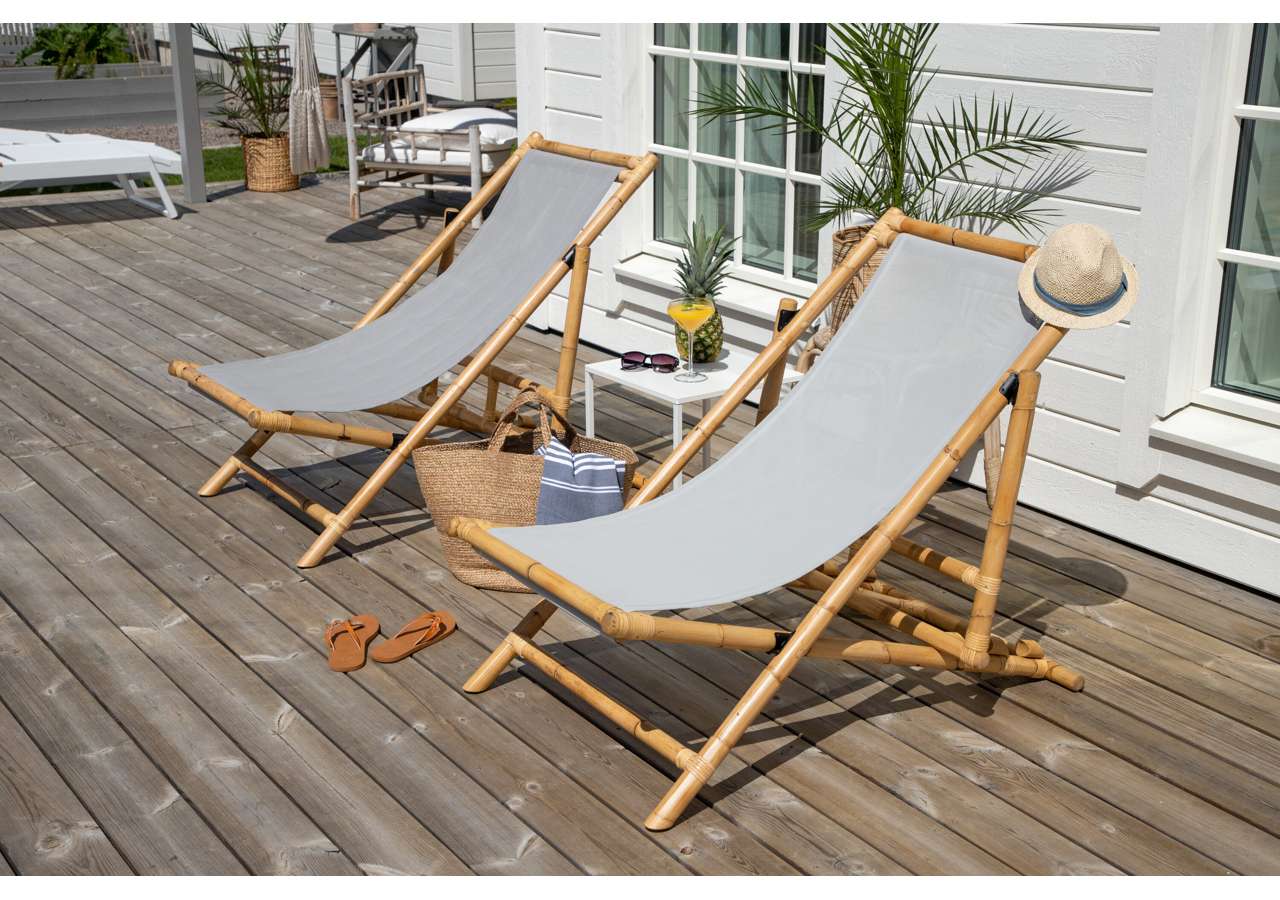 Skapa en härlig oas hemma på uteplatsen med en modern solstol i bambu från serien Cane. Denna bekväma solstolen skapar en tropisk känsla med sin genomtänka helhetsdesign. Den grå sitsen är av polyestertyg. Stommen är tillverkad av naturfärgad bambu och det naturliga materialet ger varje enskild möbel en unik karaktär. En snygg och smart solstol helt enkelt som är lätt att flytta runt och som drar blickarna till sig. Skapa semesterkänsla hemma och njut av sommardagarna.