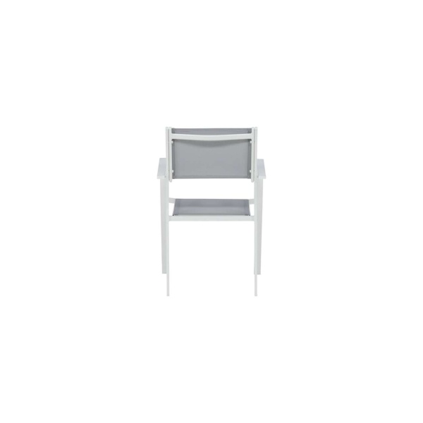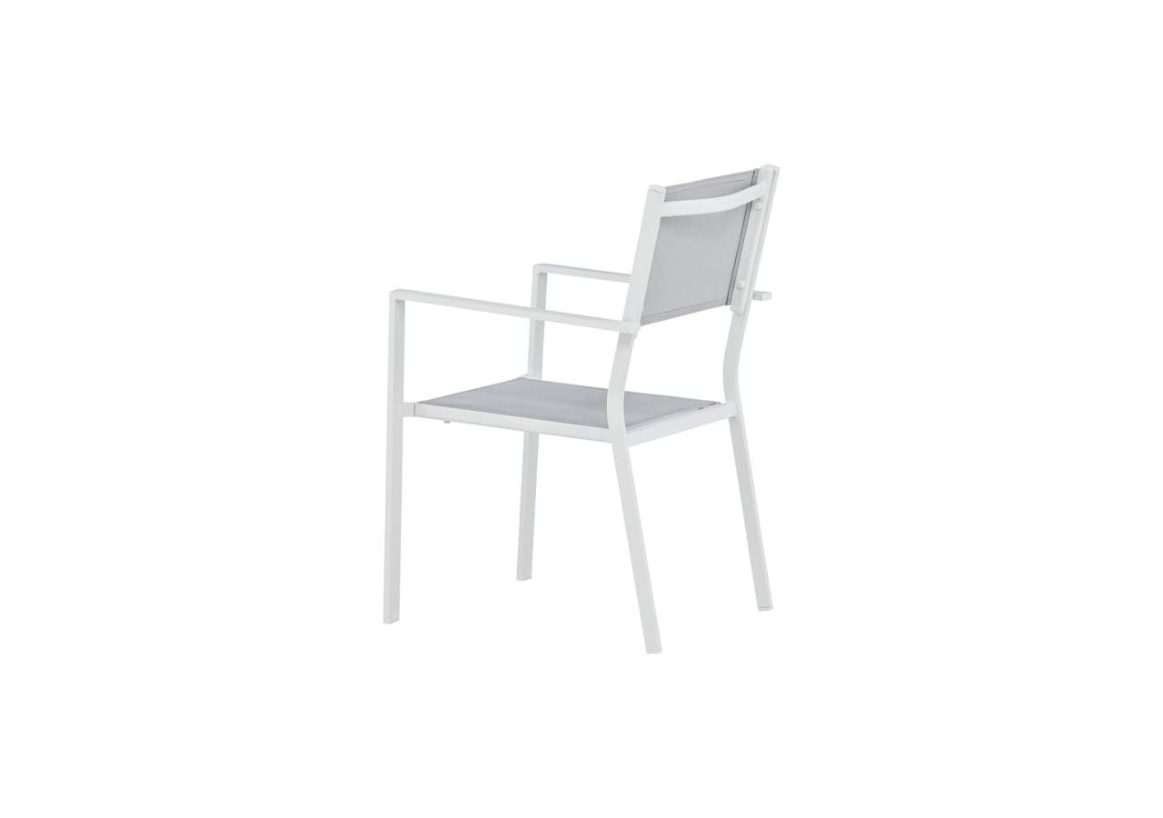 Copacabana i sin industriella och stilrena design gör sig alldeles ypperligt tillsammans med andra utemöbler. Dess vita konstruktion i aluminium och grå sits i textilene skapar ett härligt blickfång och ger dig en praktisk matstol som håller över tid. Bjud in till många sociala stunder i sommar! Stolen är stapelbar.