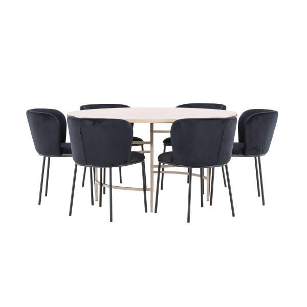 Skapa en lyxig och inbjudande matplats med matstolen Edina och matbordet Copenhagen. Uppgradera ditt matrum med en kombination av elegant design, komfort och skandinavisk minimalism. Matstolen Edina och matbordet Copenhagen bildar tillsammans en stilfull och funktionell matgrupp som förvandlar din matplats till hemmets naturliga samlingspunkt. Matstolen Edina är klädd i exklusiv svart sammet som tillför en känsla av lyx och sofistikering. Den djupa, svarta nyansen och sammetsmjuka texturen skapar en elegant kontrast till rummet och erbjuder en inbjudande sittupplevelse. Stolen är designad med både estetik och ergonomi i fokus – det stadiga ryggstödet och den mjuka sitsen gör den idealisk för långa middagar och trevliga stunder med nära och kära.