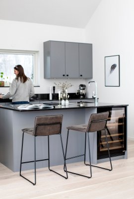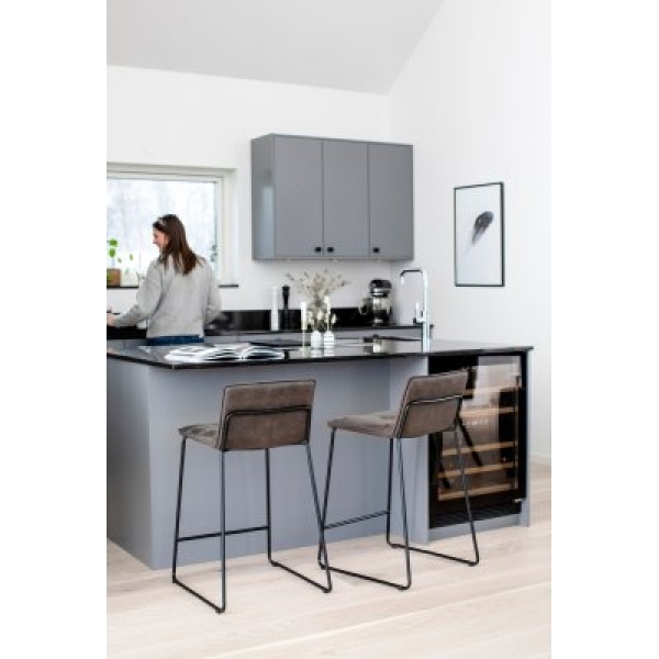 Barstol med mjukt stoppad sits i microfiber svartlackerat underrede med fotstöd