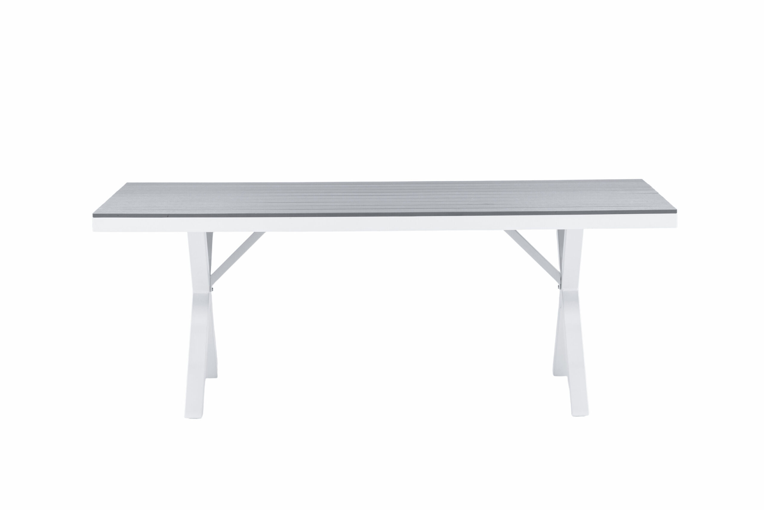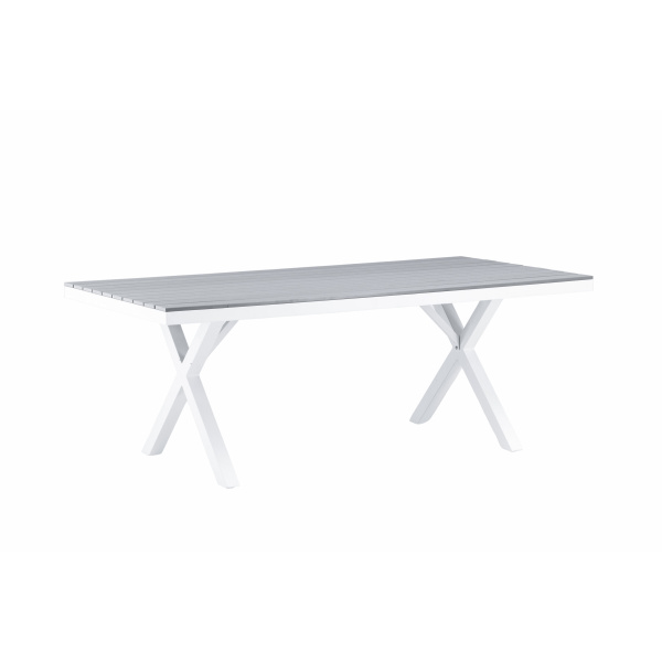 Matbord från serien Garcia i klassisk design med en rektangulär bordsskiva i dekorativ aintwood – lika tåligt som stilrent! Stommen är i vit aluminium som är lättviktigt och gör bordet enkelt att flytta omkring. Bordet lämpar sig utmärkt för utomhusbruk och passar därför lika bra i uterummet som i trädgården. Matcha med våra matstolar i samma serie för en komplett look och skapa ett iögonfallande blickfång på din uteplats. Här kan du samla nära och kära för strålande måltider i sommar!