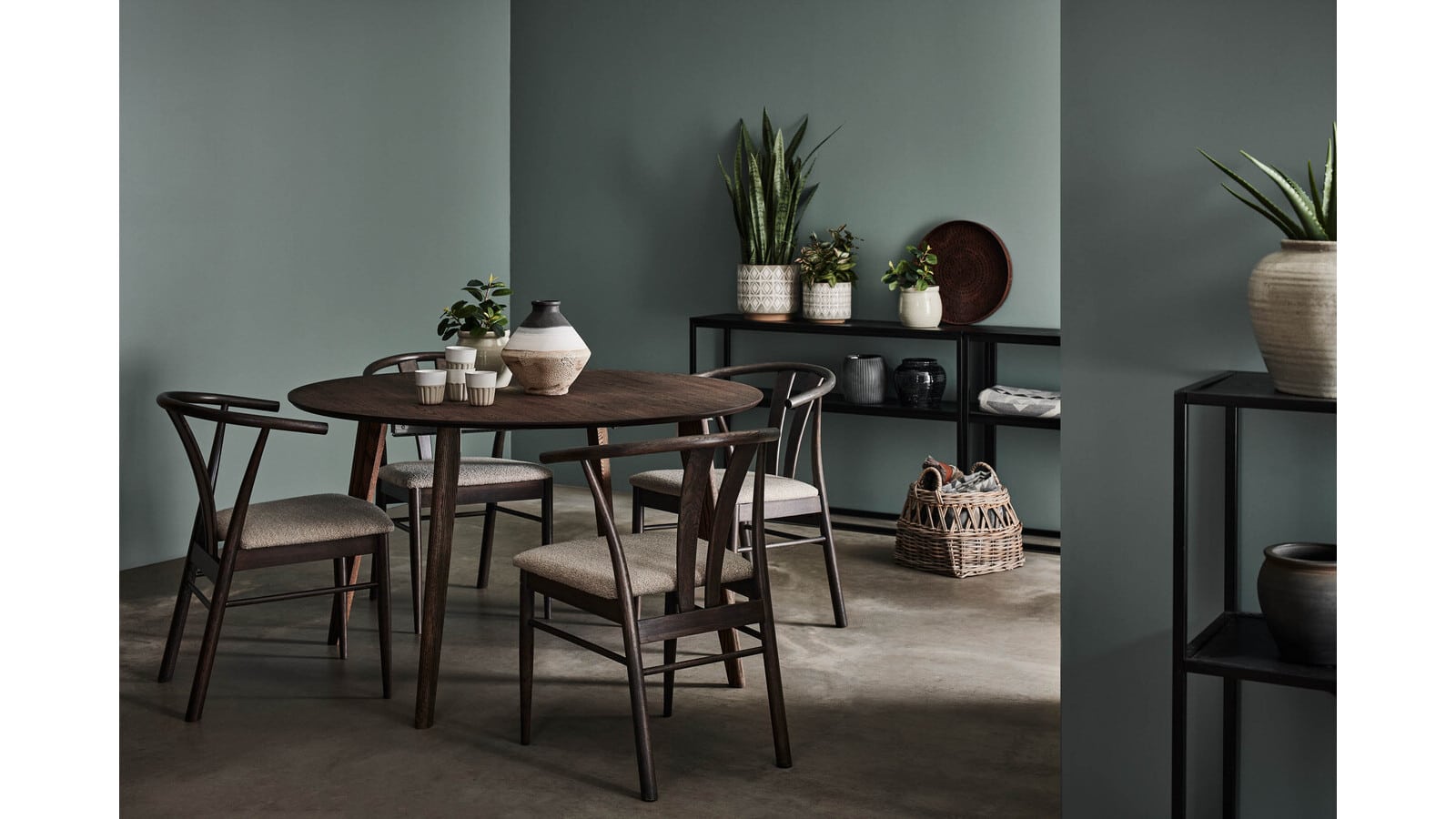 Hem » Butik » JIVE Matstol i lackad ek brun/grå