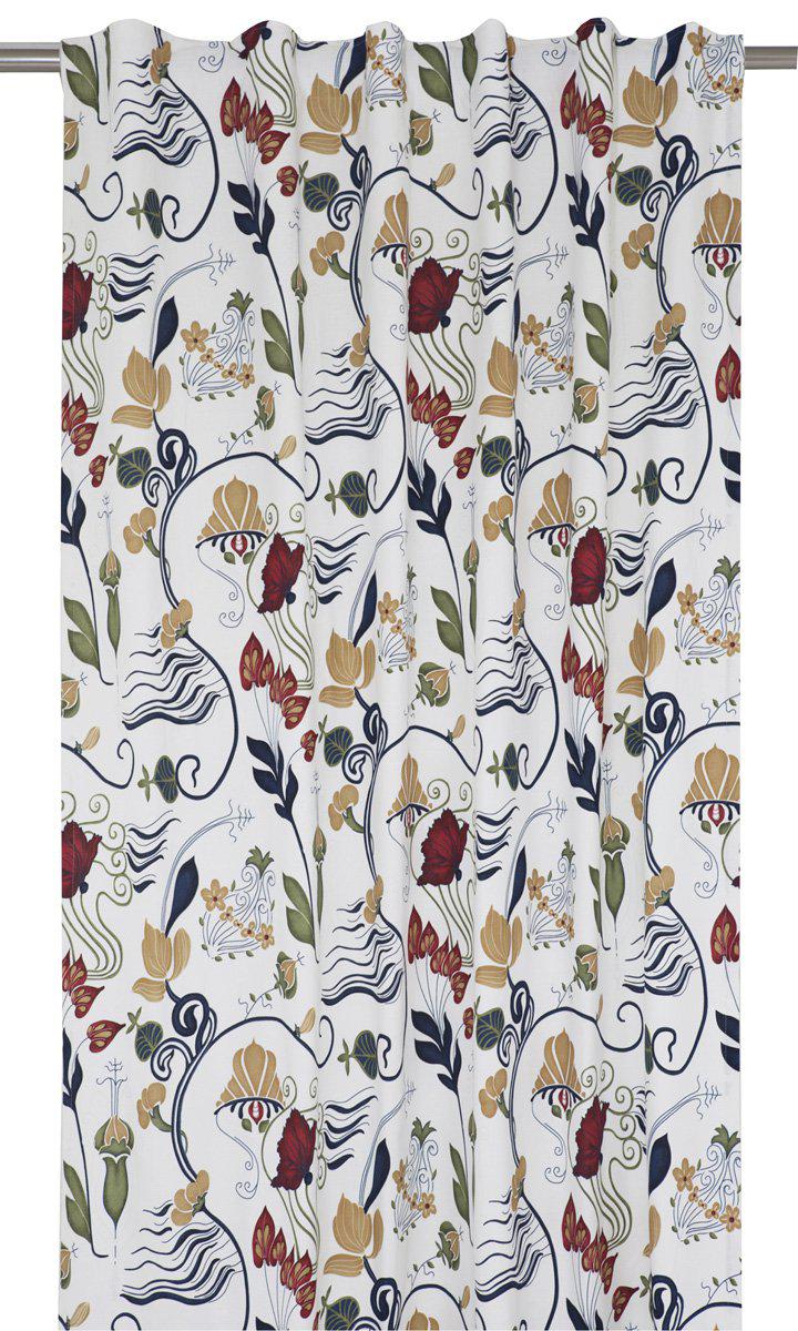 Klassiskt tryckt mönster från Svanefors. 1-pack multibanlängd med multiband i ovankant, fållade långsidor och overlocksöm i nederkant. Multibandet är en flexibel lösning som gör att gardinen kan hängas upp antingen med fingerkrokar, räkor eller direkt på en stång beroende på vilken typ av veck och vilket fall du vill ha på gardinen. Använd snabbfållningsband för att få önskad längd på gardinen. Måttet är 135x240cm. Tvättråd: 40 grader maskintvätt Tål strykning med mellanhög temperatur Klorblekmedel får ej användas Kemtvätt (Perkloretylen) Kan ej torktumlas