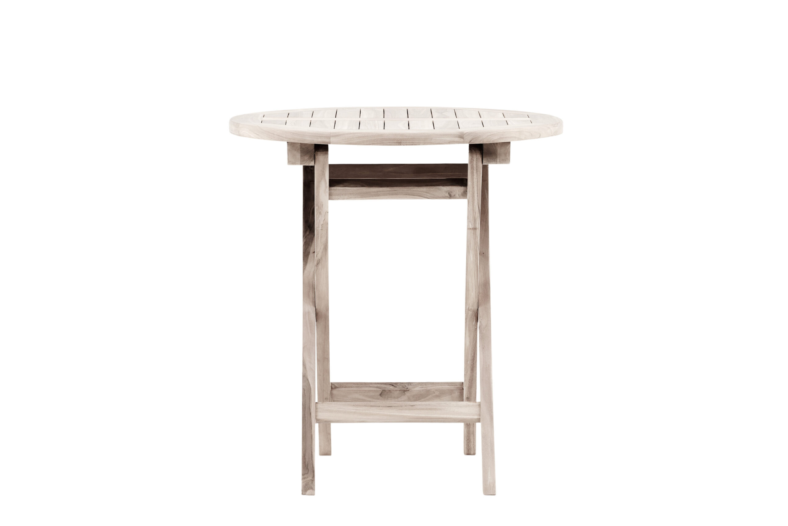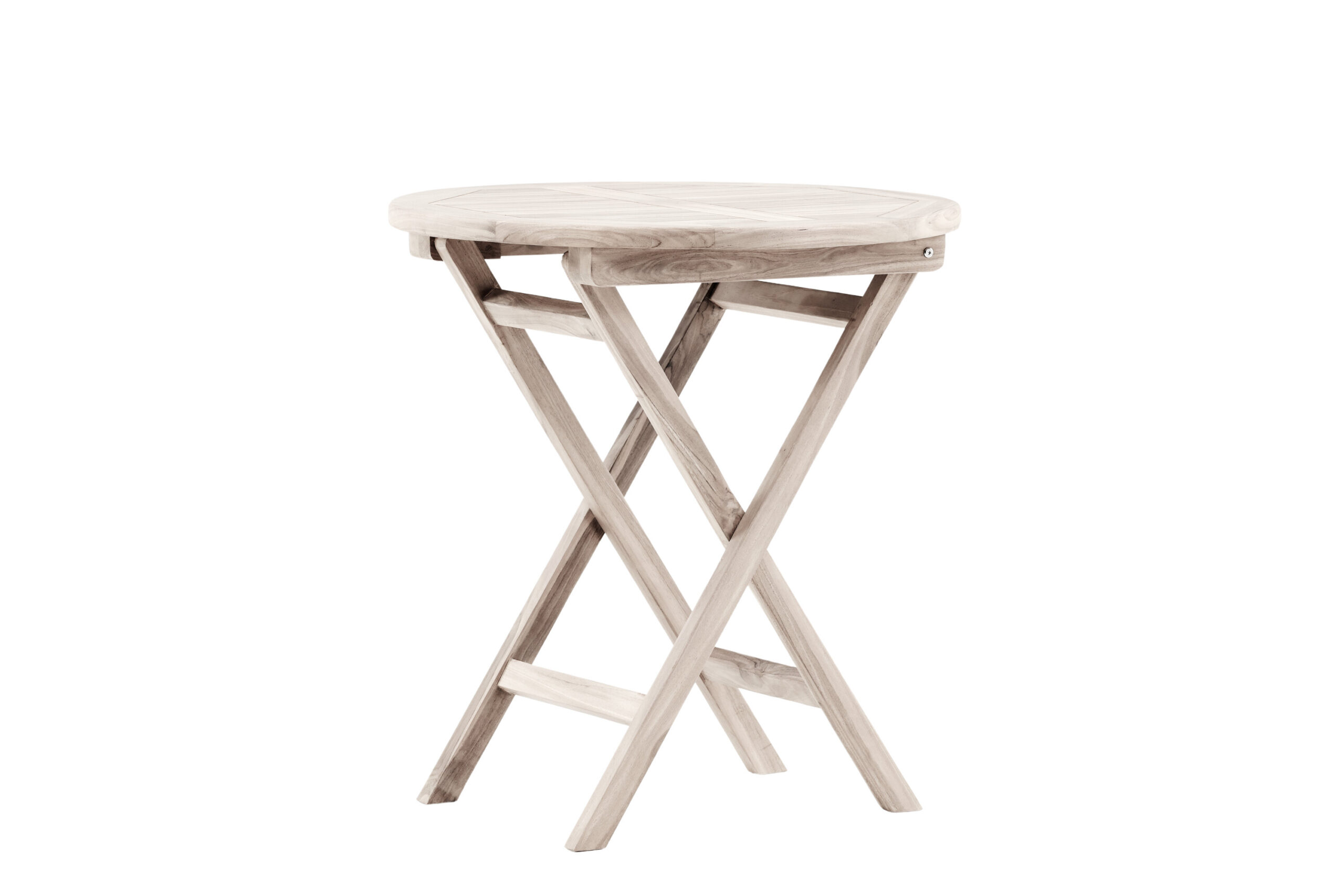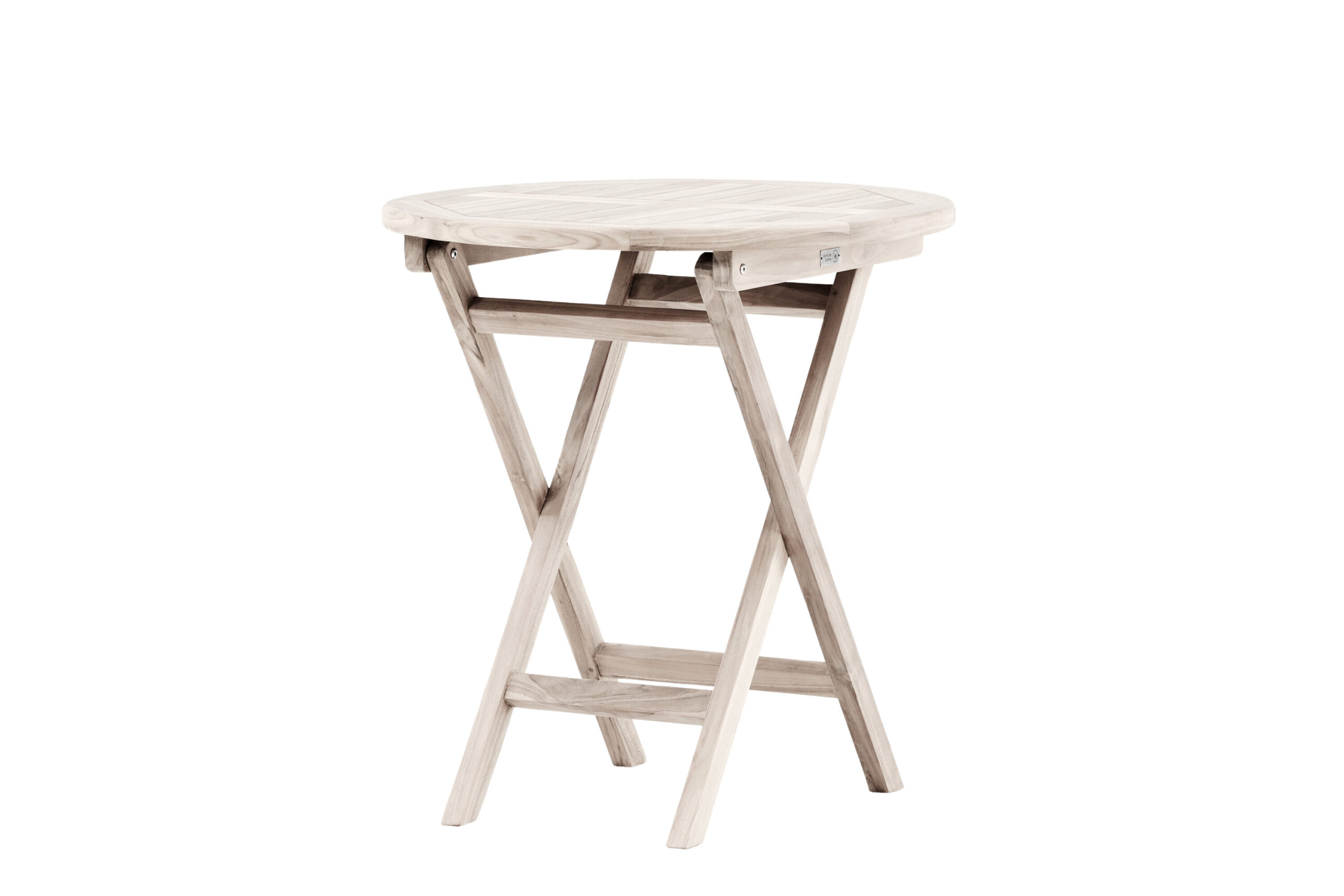Kenya är ett elegant cafébord med en diameter på 70 cm, perfekt för mindre utrymmen som balkonger eller mysiga hörn på uteplatsen. Tillverkat i hållbar teak och med en vacker whitewash-finish kombinerar det naturlig charm med modern design.