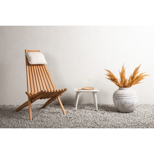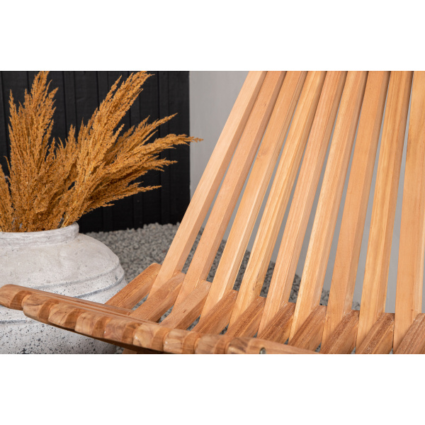 En stilren och tidlös loungestol i teak. Möblera din uteplats eller inomhus med den perfekta loungestolen som är enkel att placera, matcha och utnyttja under lata dagar.