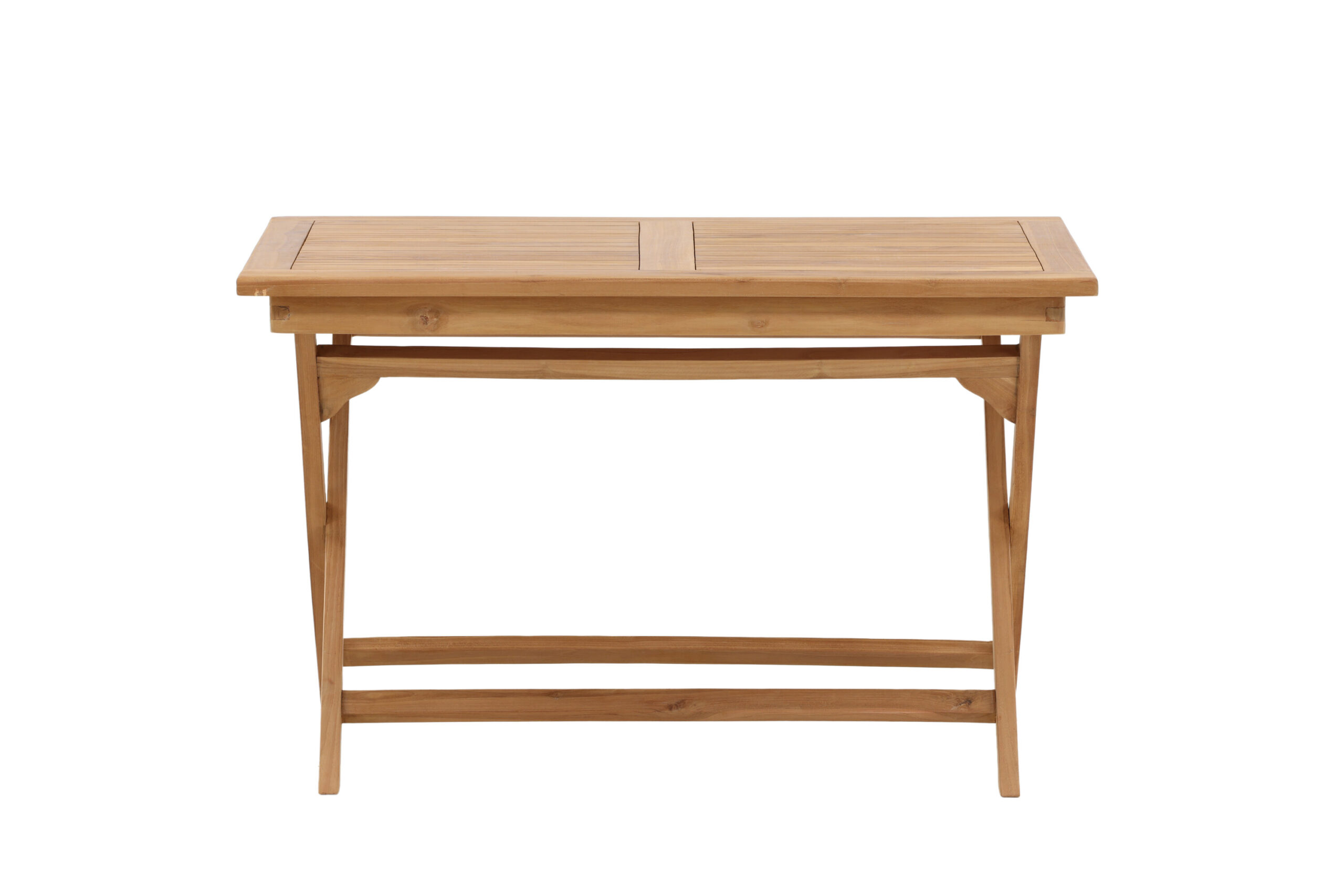 Matbord Kenya i klassisk design med en rektangulär bordsskiva i dekorativ teak – lika tåligt som stilrent! Bordet lämpar sig utmärkt för utomhusbruk och passar därför lika bra i uterummet som i trädgården. Matcha med våra matstolar i samma serie för en komplett look och skapa ett iögonfallande blickfång på din uteplats. Här kan du samla nära och kära för strålande måltider i sommar! Mått: 120×70 cm.