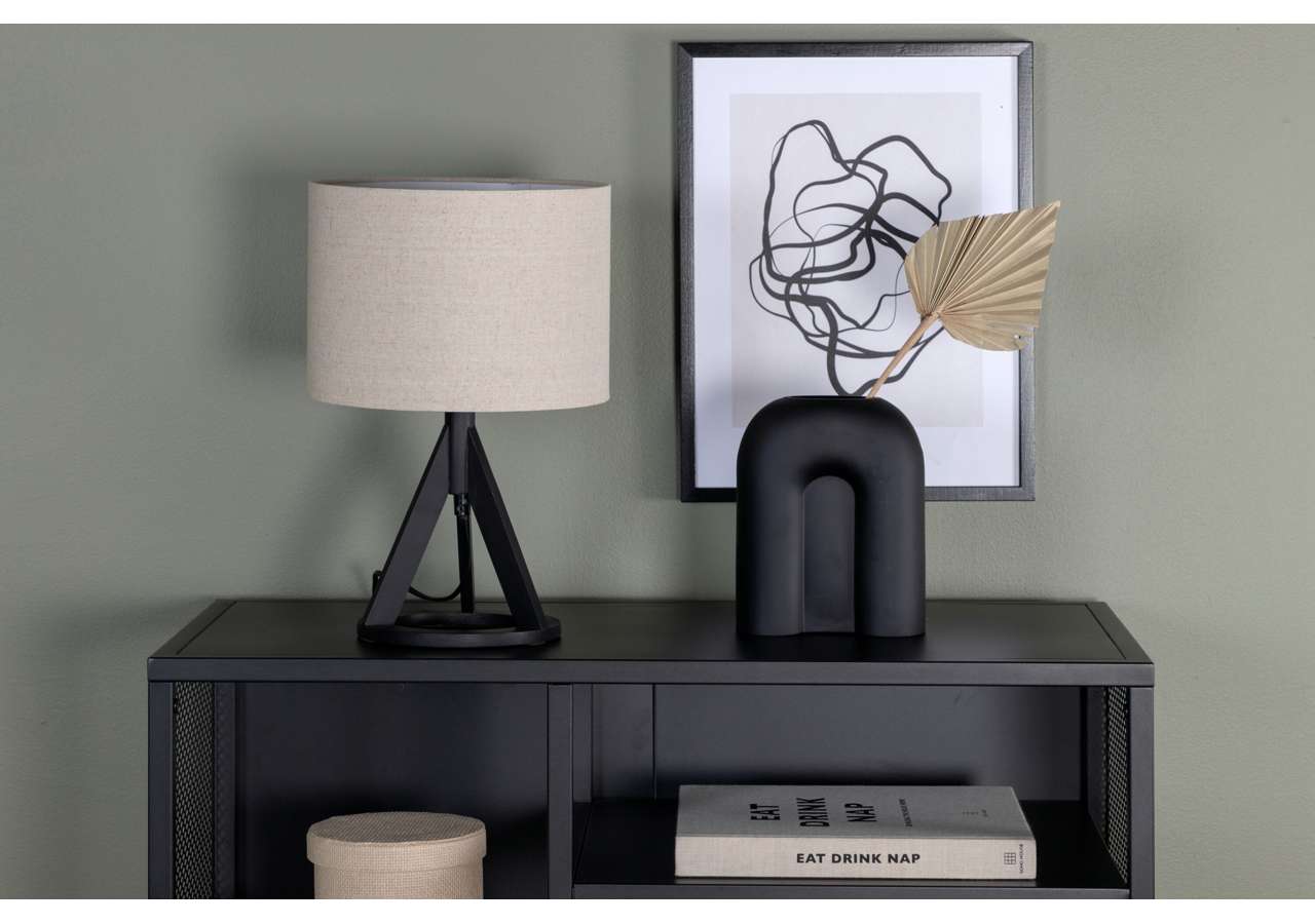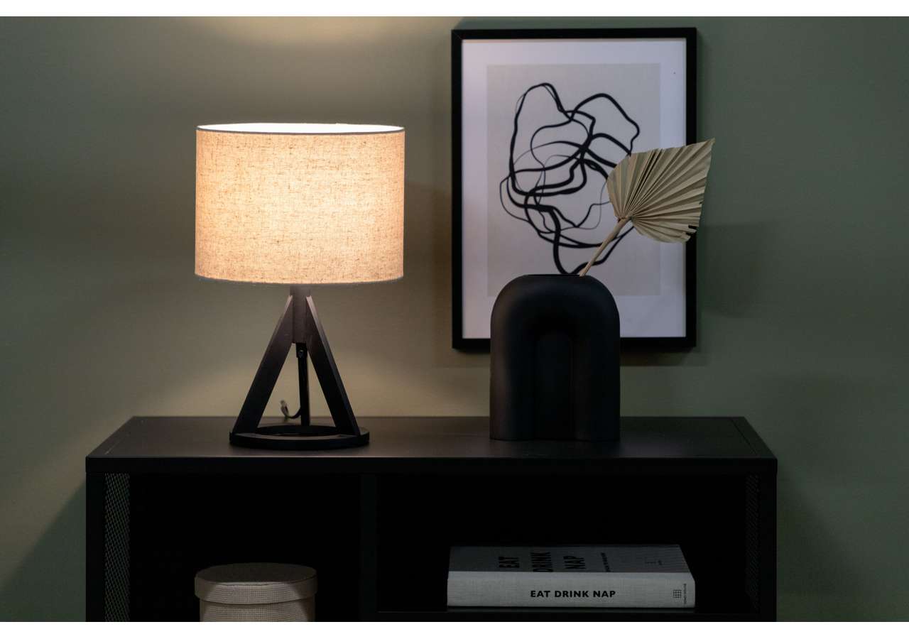 Lika dekorativ som modern! Kona bordslampa har ett stilrent svart stativ med tre ben och en cirkelformad botten, samt en lampskärm i linne som ger lampan en härlig mjuk ton. Kona passar utmärkt på avlastningsbordet eller på annan mindre yta i hemmet!