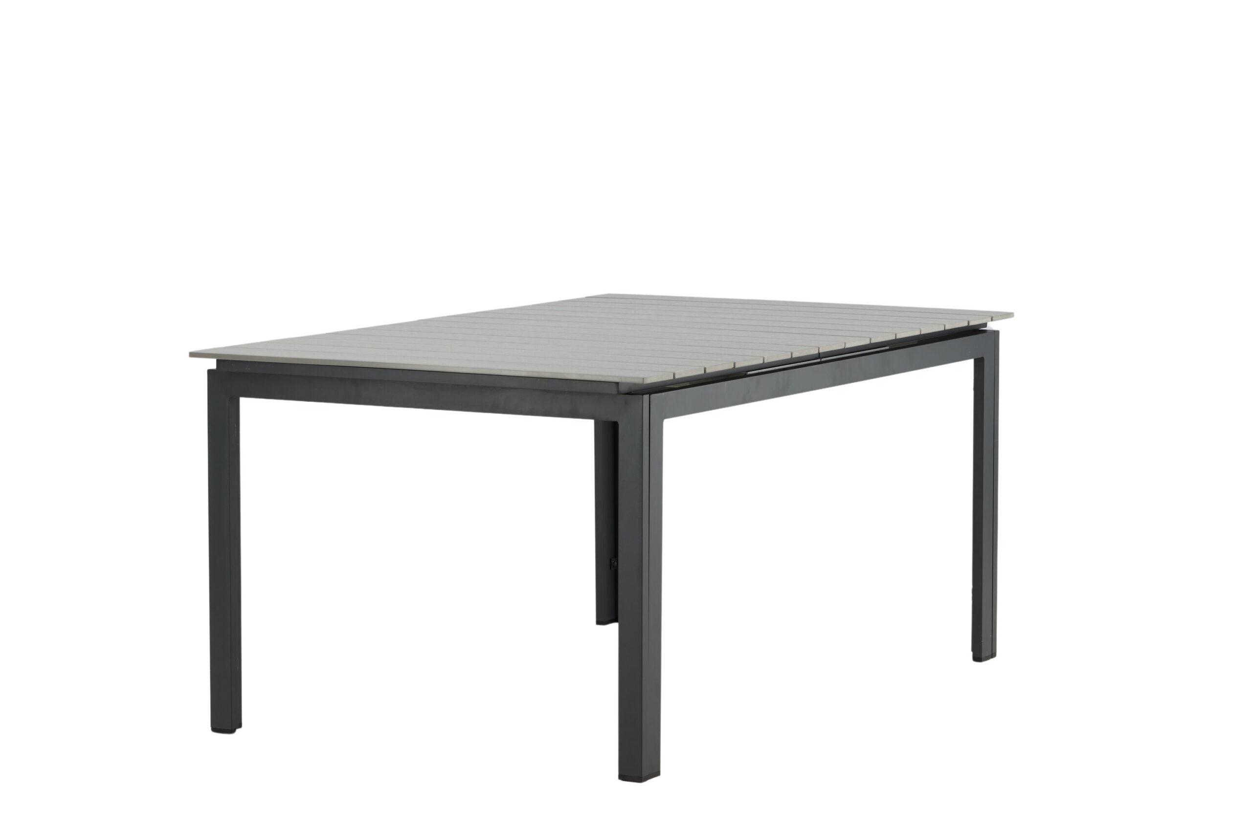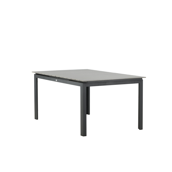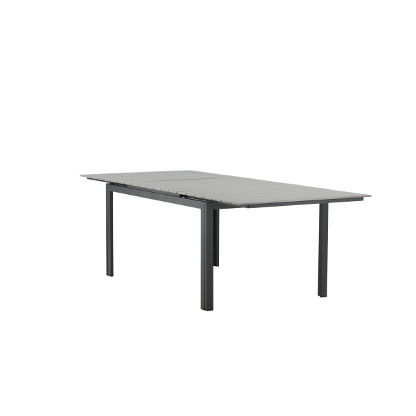 Levels – Ett rektangulärt matbord som går att förlänga vid behov när det behövs fler sittplatser: här får alla nära och kära plats! Bordsskivan är i grå aintwood och bordsbenen i metall: två slitstarka material som ger dig ett tåligt matbord för utomhusbruk. Möblera tillsammans med ett par bekväma matstolar så får du en komplett matgrupp till sommarens utomhusmåltider.