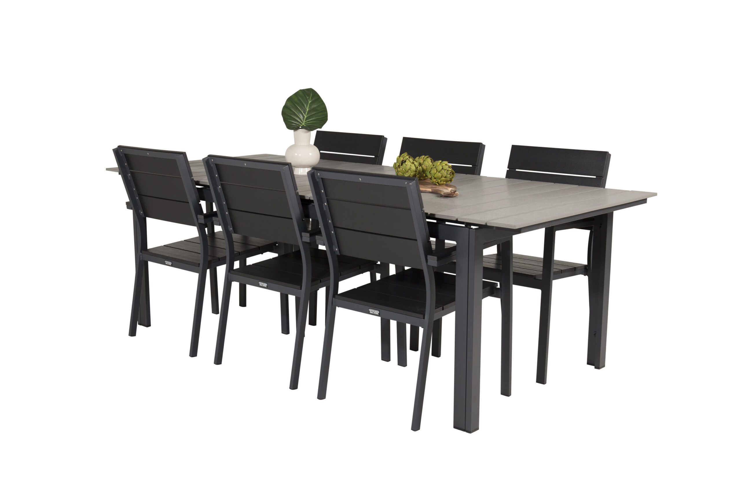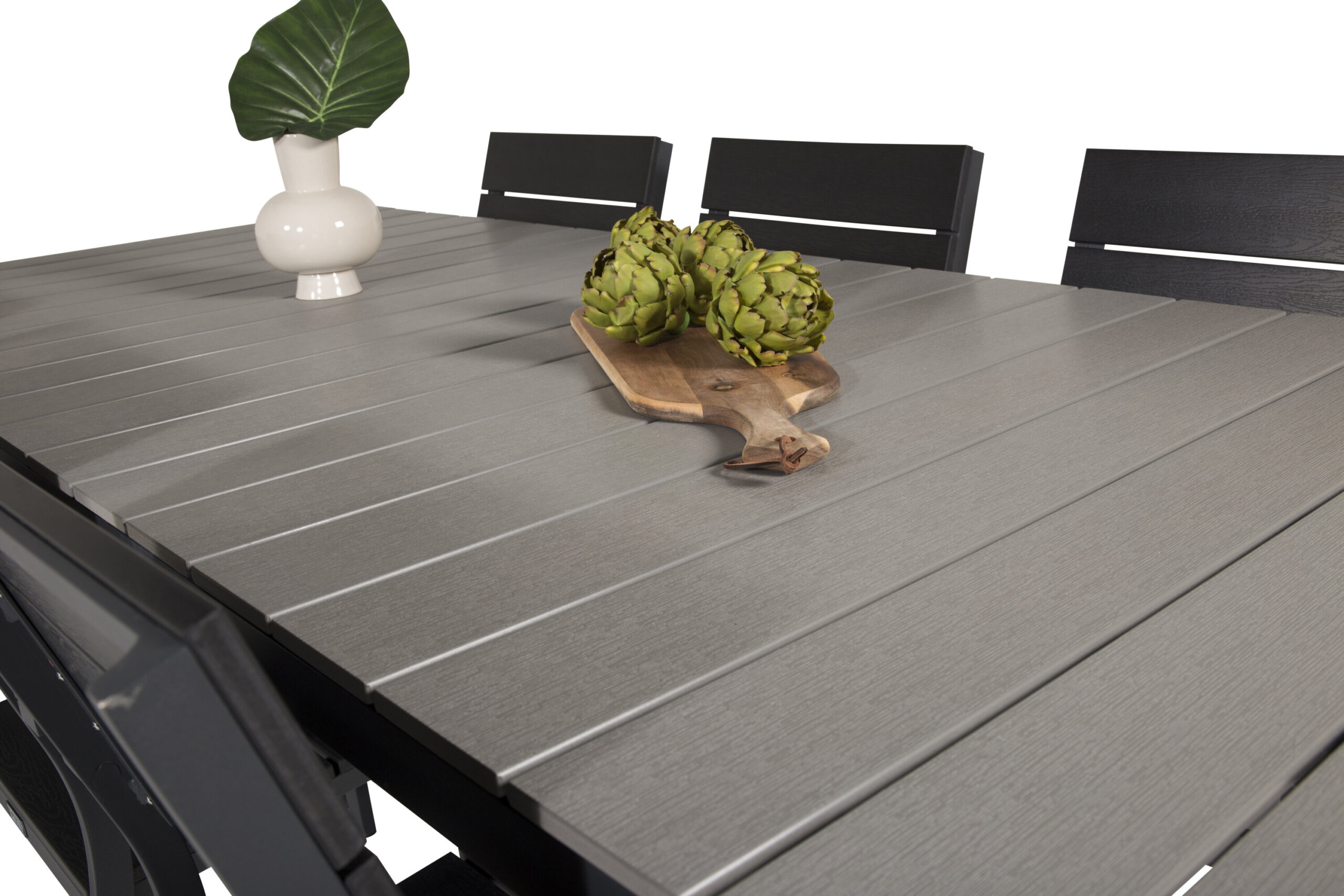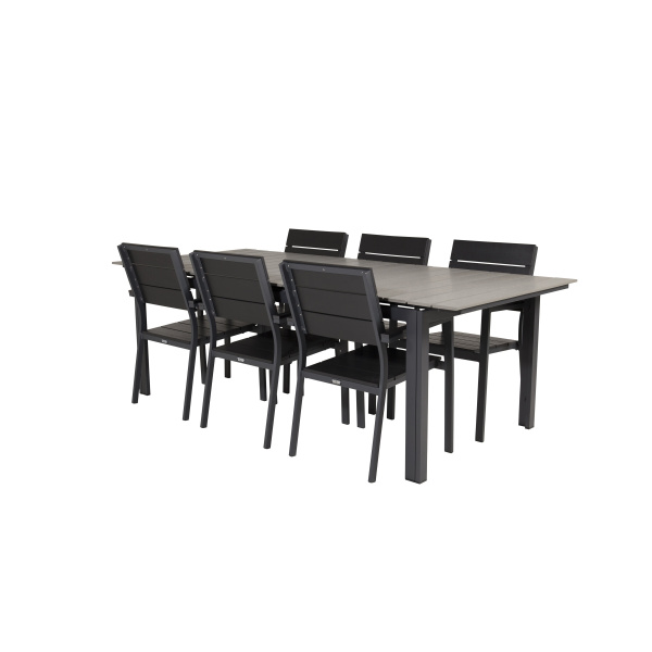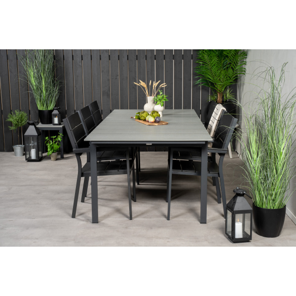 En matgrupp i modern och stilren design. Matbord Levels och matstolar Levels är perfekta kombinationen till trädgårdens hjärta!