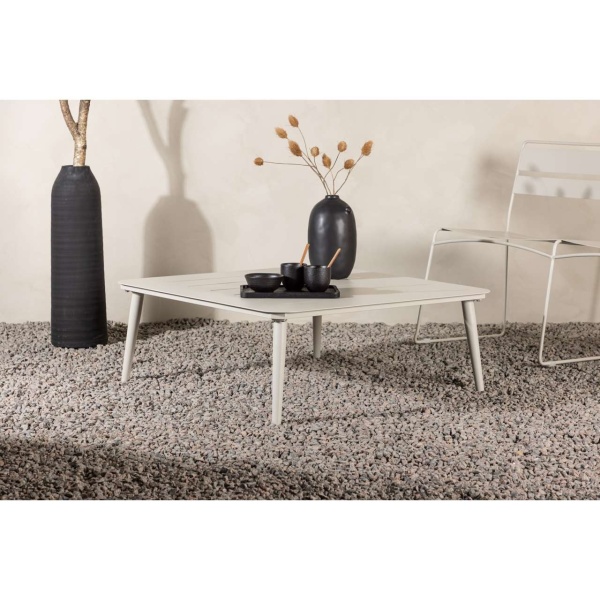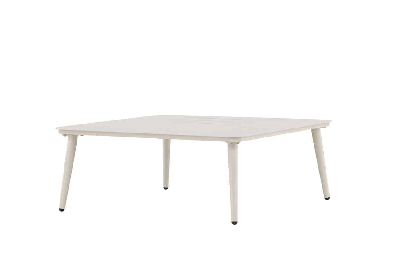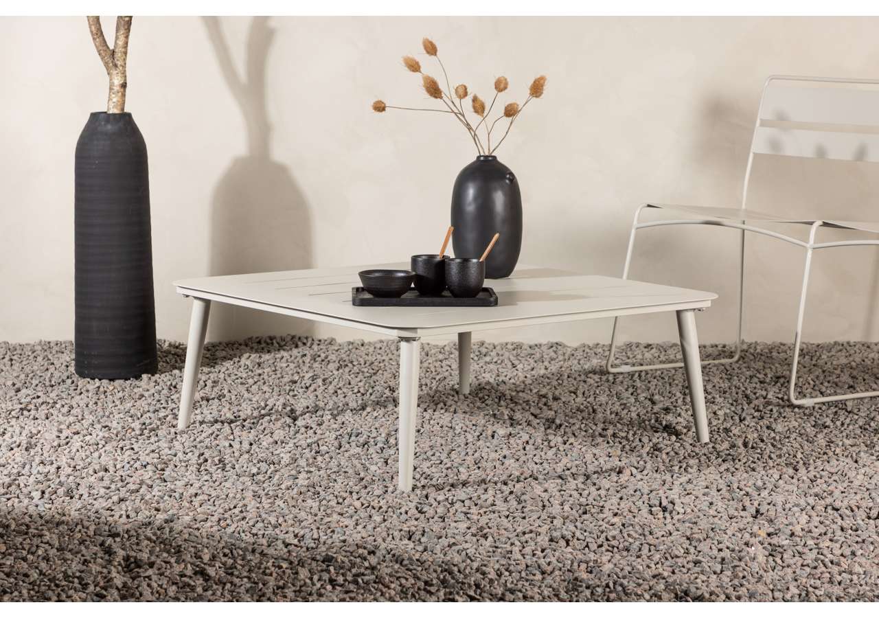 Lina-soffbordet är tillverkat i aluminium, vilket ger det enastående hållbarhet och motståndskraft mot väder och vind. Med sina mått på 90x90cm finns det gott om plats för dina favoritdrycker, snacks eller dekorationer.