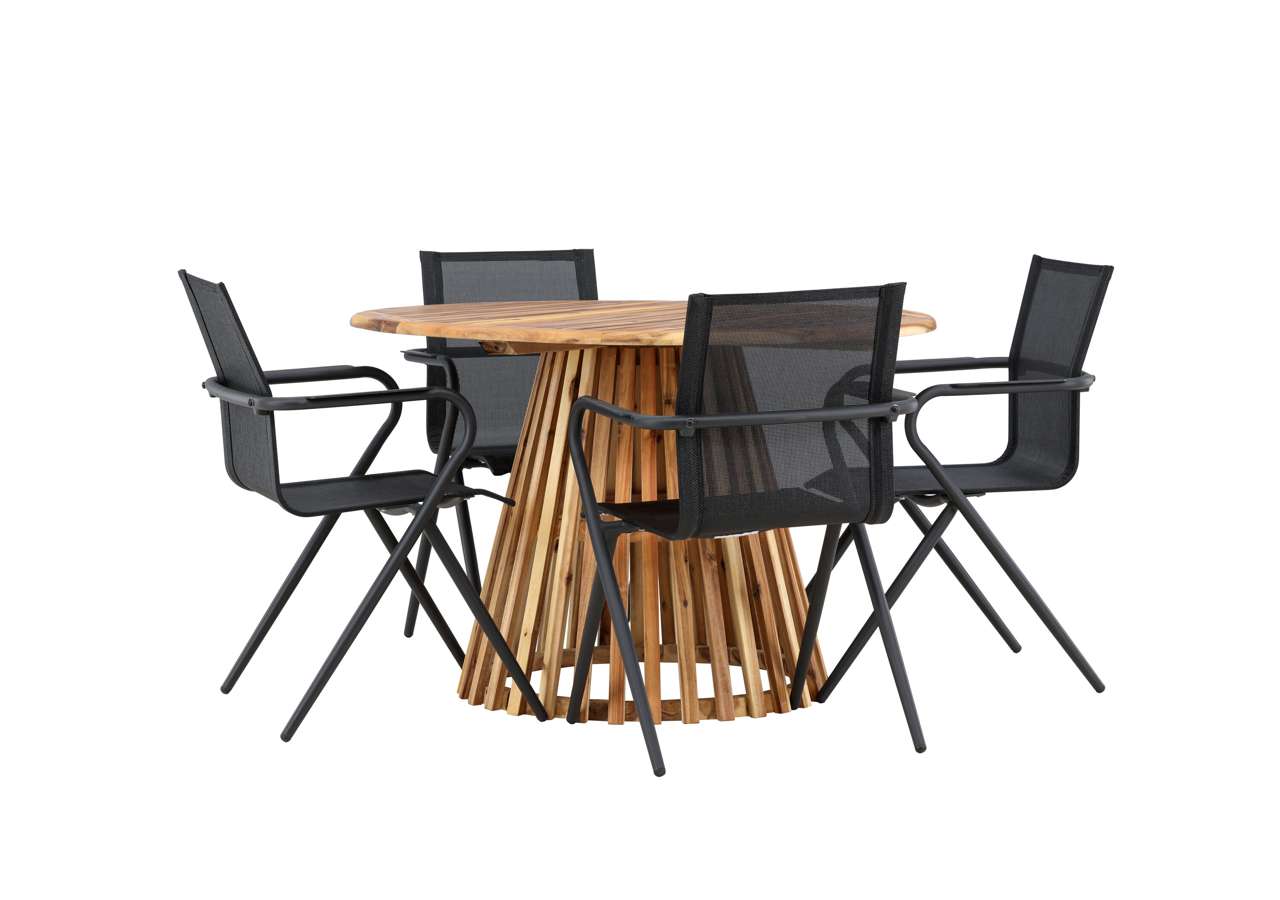 Discover the perfect dining set for your outdoor space with our elegant Lumpur table and stylish Alina chairs. With an impressive diameter of 120 cm, the Lumpur table provides plenty of space for family dinners and enjoyable gatherings under the open sky.