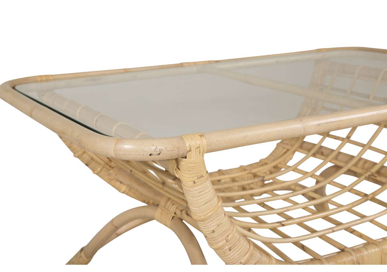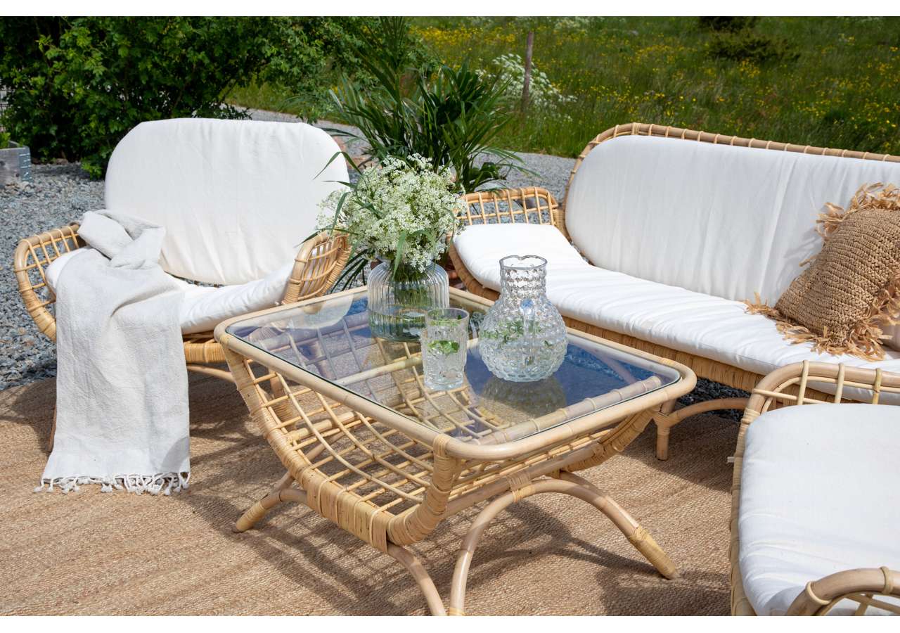 Moana soffbord är det perfekta bordet för alla inredningsgurus där ute! Soffbordet är tilverkat i naturfärgad rotting och har en bordsskiva i glas. De mjuka formerna och dekorativa underredet skapar ett lyxigt och varmt uttyck till uteplatsen. Hyllan undertill ger plats för extra förvaring eller dekoration. Matcha soffbordet med Moana soffa och fåtölj och skapa ett trendigt helhetsintryck.