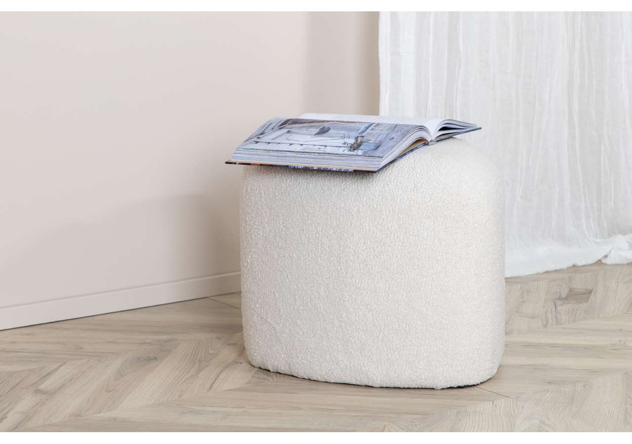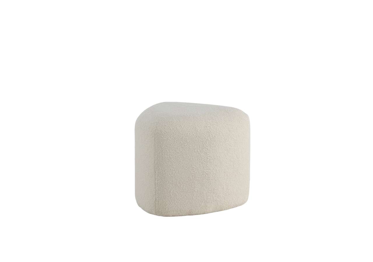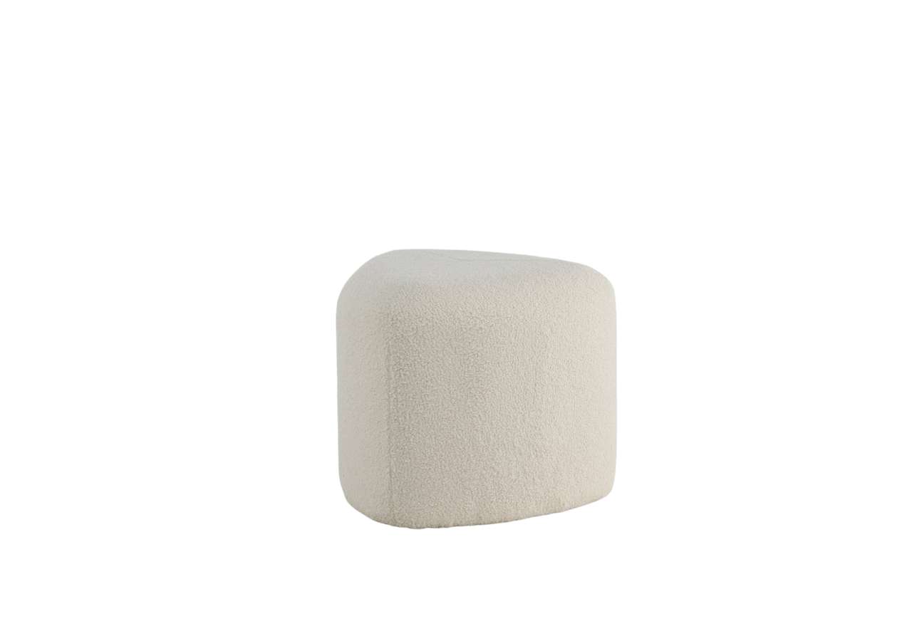 Peg – en triangelformad inredningsdröm och smart tillskott till hemmet! Med sin nätta storlek och lurviga teddytyg i mysig vit kulör passar den lika bra som fotpall eller extra sittplats som ensam stilikon. Sittpuffen Peg utmärks av sina mjuka former och modemedvetna design som drar blickarna till. Tillverkad av materialen skum, bomullsfiber, teddytyg och böjt trä. Puffens mått: Höjd: 41 cm, diameter: 46 cm. Inred rummet smart och stilsäkert!