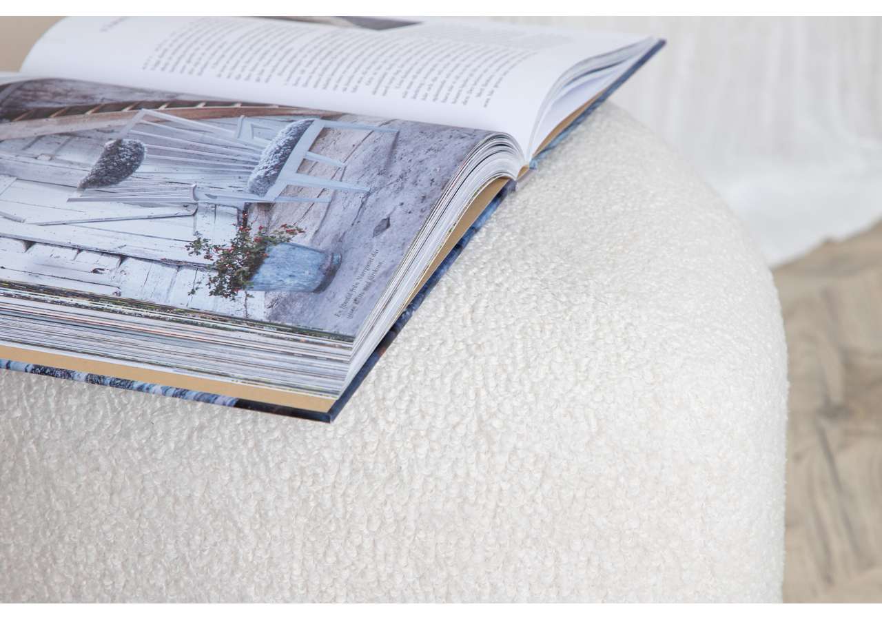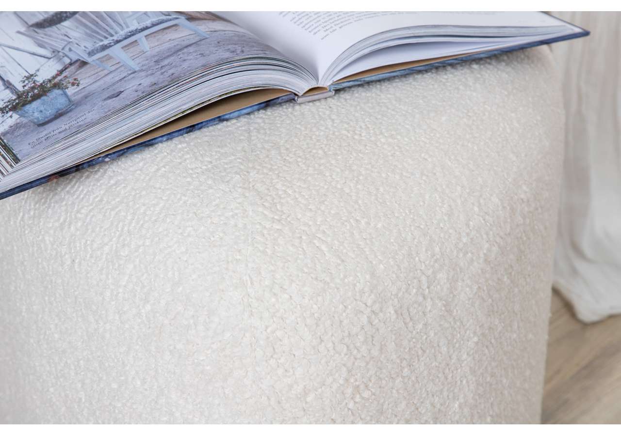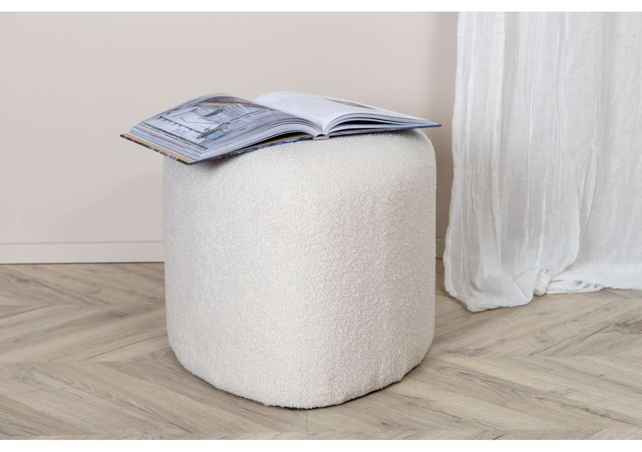 Peg – en triangelformad inredningsdröm och smart tillskott till hemmet! Med sin nätta storlek och lurviga teddytyg i mysig vit kulör passar den lika bra som fotpall eller extra sittplats som ensam stilikon. Sittpuffen Peg utmärks av sina mjuka former och modemedvetna design som drar blickarna till. Tillverkad av materialen skum, bomullsfiber, teddytyg och böjt trä. Puffens mått: Höjd: 41 cm, diameter: 46 cm. Inred rummet smart och stilsäkert!