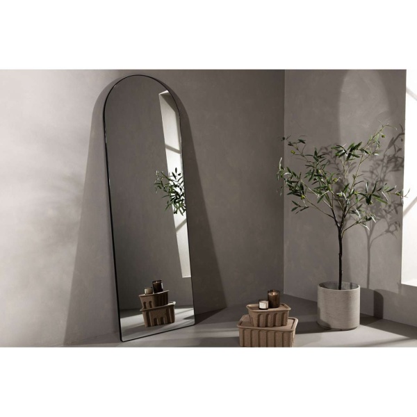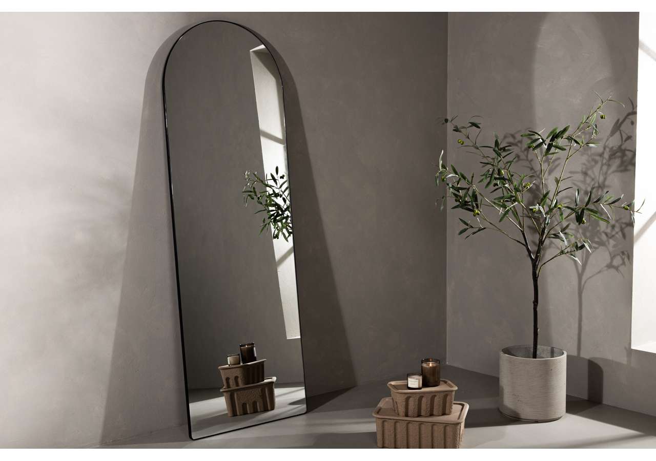 Inget öppnar upp ett rum så bra som en spegel i generös storlek! Sarasota spegel har en tunnare svart ram omkring sig och en rundad topp som skapar ett charmigt intryck. Inramningen blir till en snygg detalj som enkelt matchar andra väggdekorer. Häng upp den enkelt eller luta ensam mot väggen för att öppna upp ditt hem för nya dimensioner!