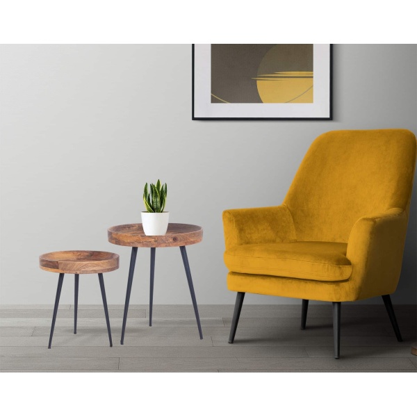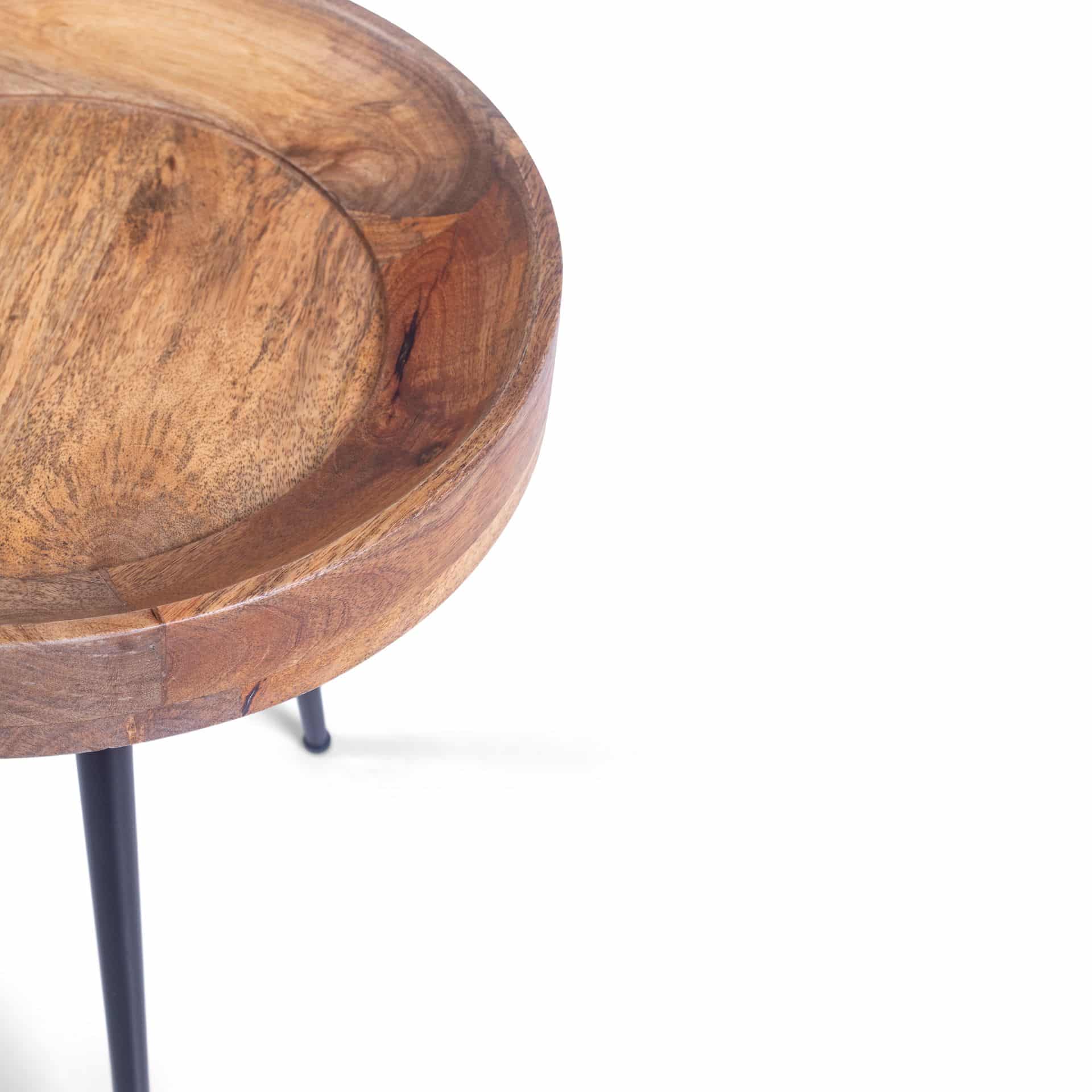 SmokeTray bord 45.Lätta och eleganta metallben pulverlackerade i svart färg.Bordsskivan har en upphöjd kant runt om. Detta är användbart för att hålla böcker, konstverk eller dekorationer på plats så att de inte faller ned.Bräda av naturakacia.Mått: H: 50 x Ø 45 cm