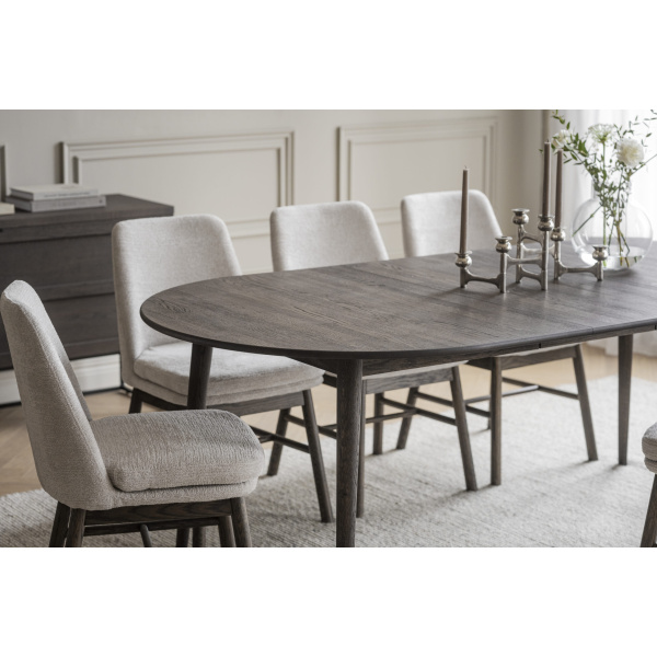 Tyler matbord 170 cm är ett ovalt bord i skandinavisk design som är tillverkad i Europa av massiv brunoljad FSC®-certifierad ek. En iläggsskiva ingår när man köper bordet och det går att komplettera med ytterligare en iläggsskiva på 40 cm, vilket då ger ett matbord på hela 250 cm. Finns i flera färger och storlekar.