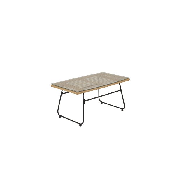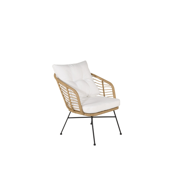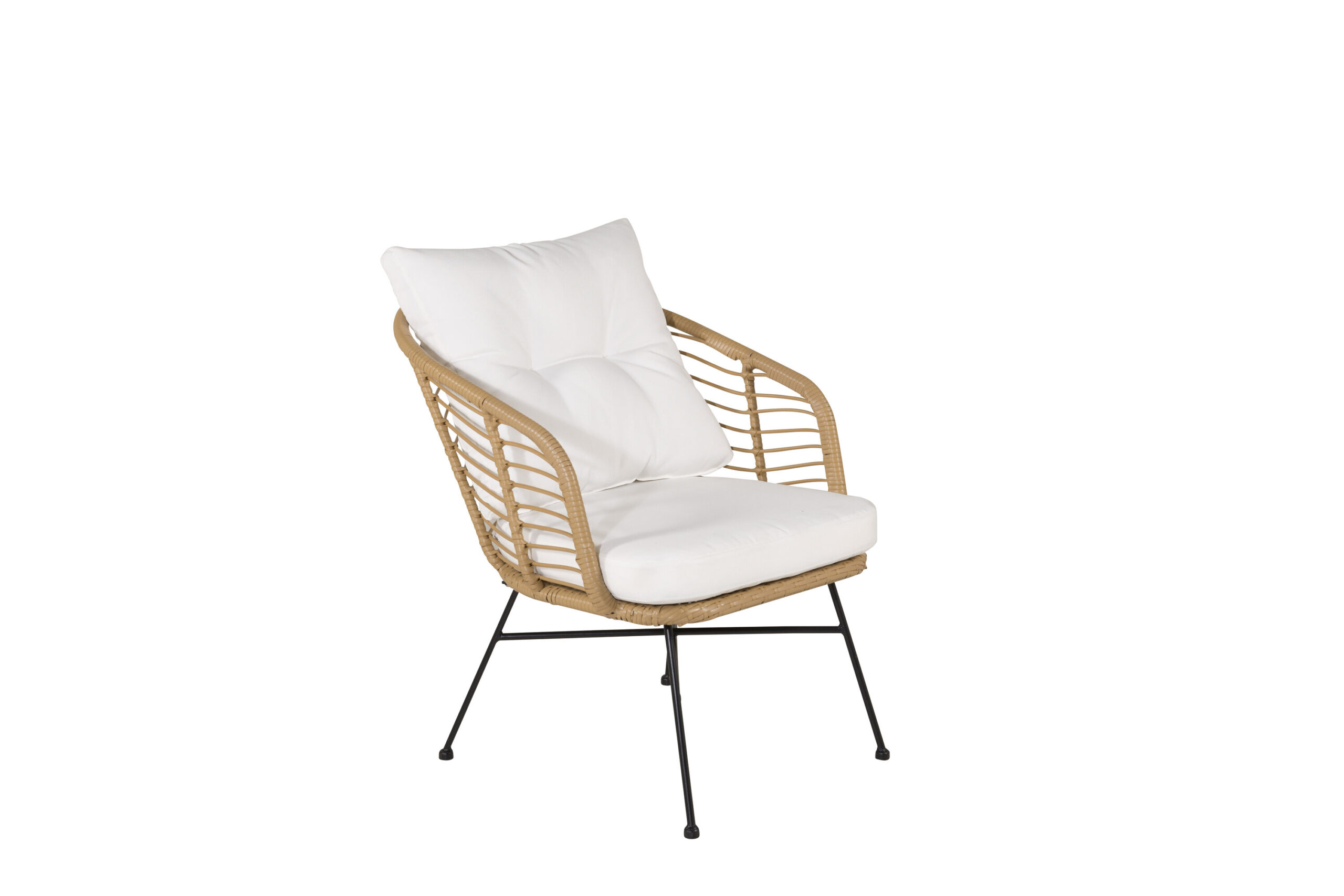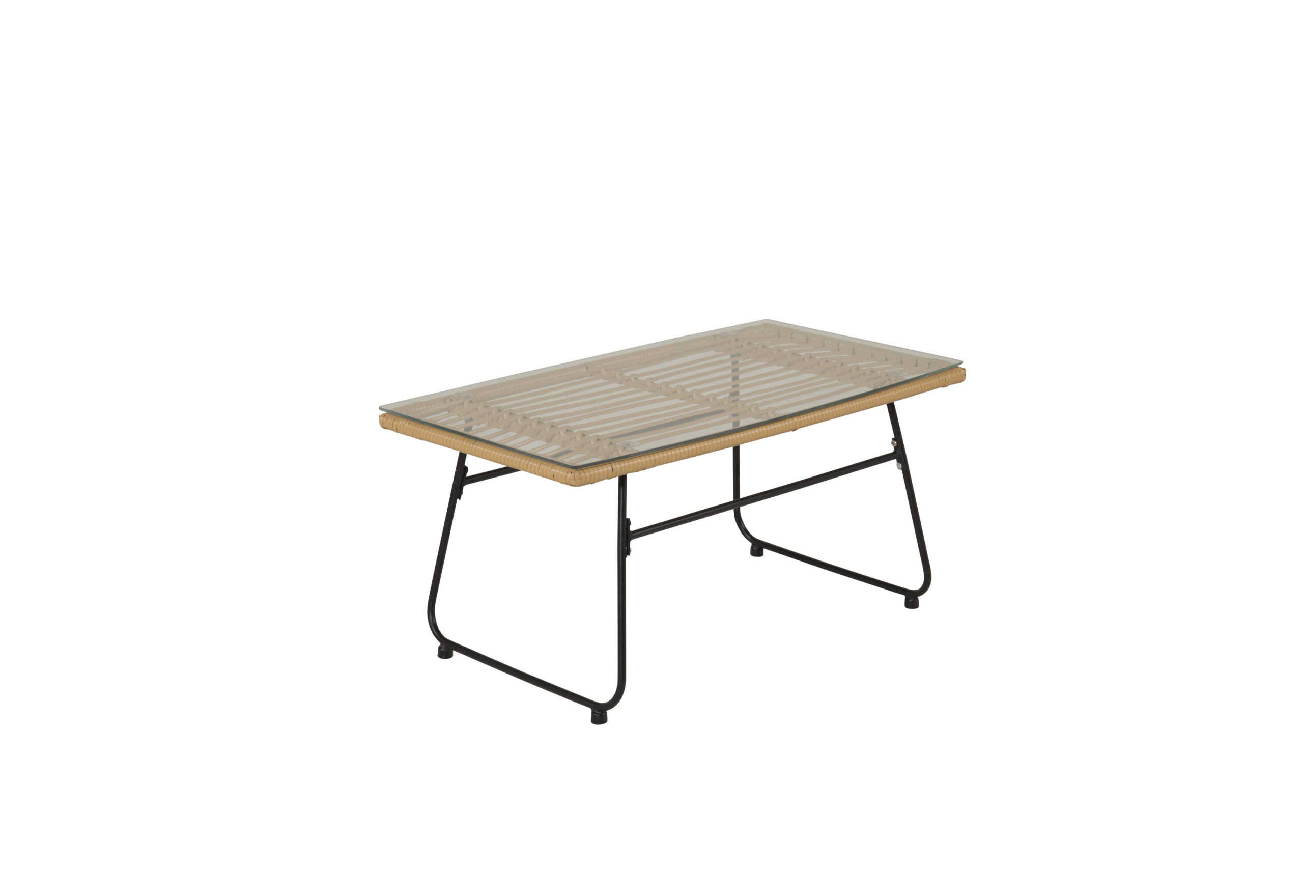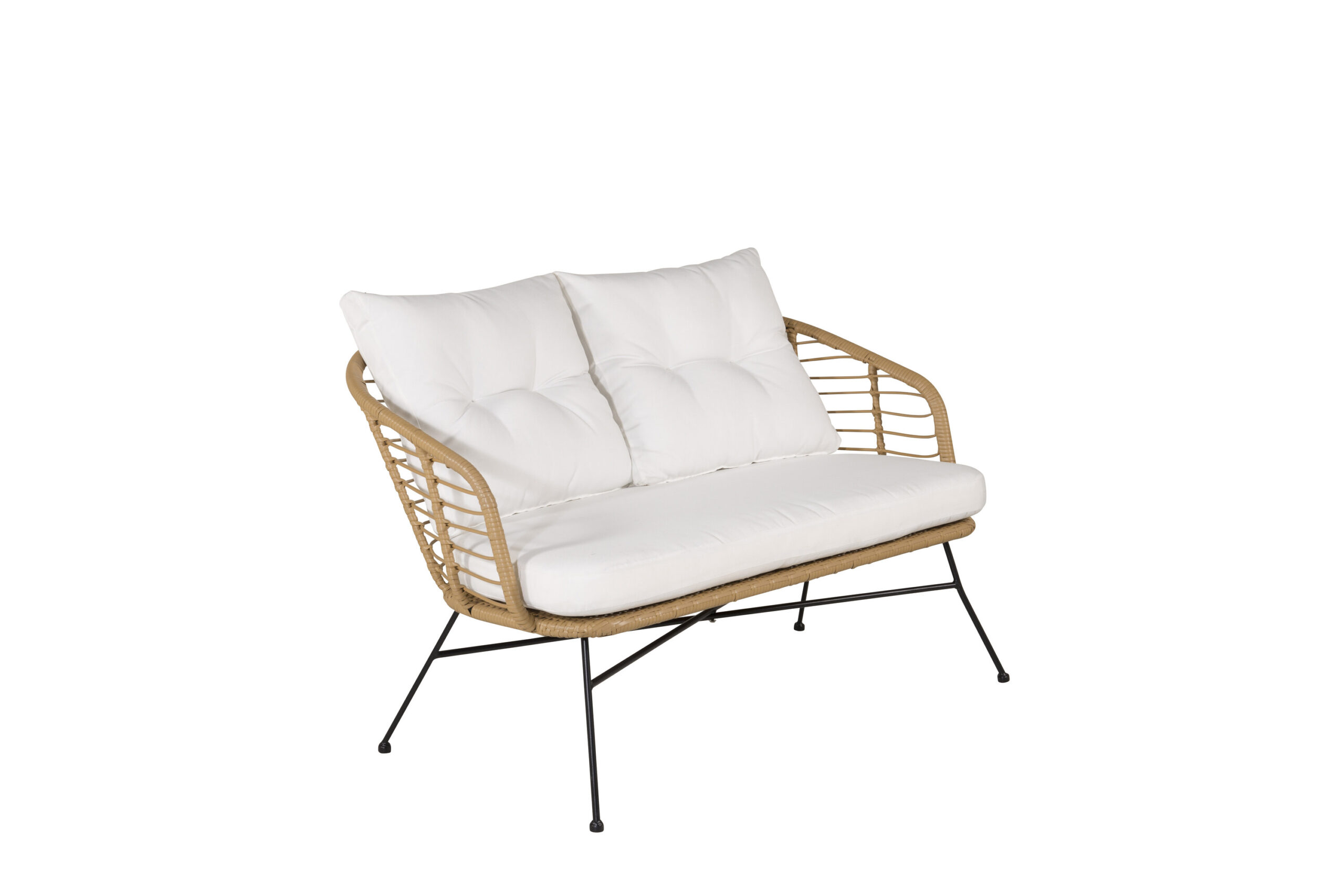 Stilren nätt soffgrupp i modern design som passar perfekt på den inglasade uteplatsen. Möbelgruppen består av en tvåsitssoffa, två karmfåtöljer tillverkat i en nätt ramställning i svart pulverlackerad metall samt rygg och sits är designat i ett stilrent nätt mönster av naturrotting. Inklusive vita dynor och ett soffbord med detaljer i wicker och en bordsskiva av glas. Inred uteplatsen med en lounge-grupp som garanterat kommer förlänga de sena sommarkvällarna tillsammans med nära och kära!