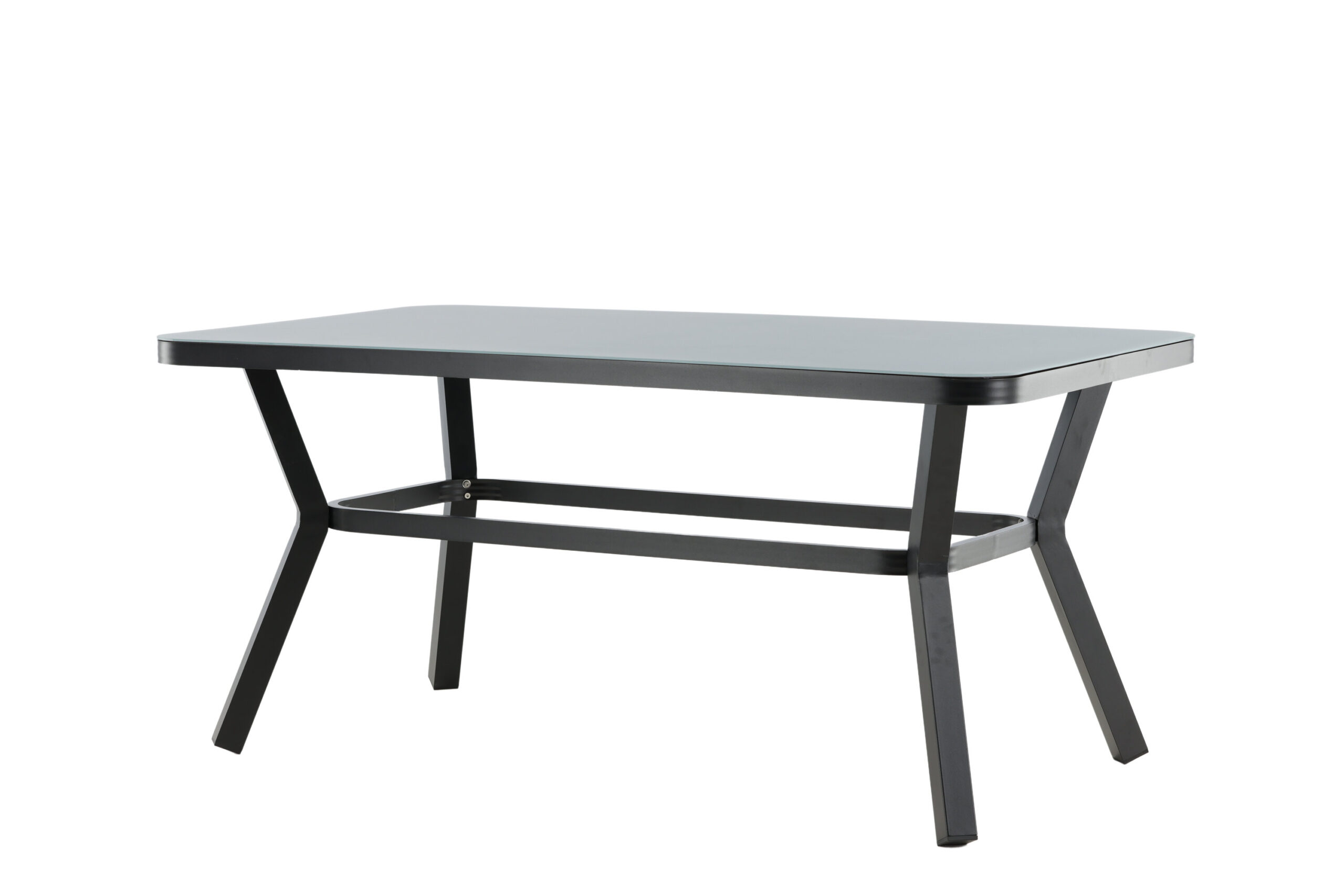 Virya är ett läckert matbord med en bordsskiva i glas och bordsben i svart aluminium. Med dess hållbara material och stilrena uttryck passar matbordet lika bra ute på altanen som ute i trädgården. Bjud in vänner och familj – och njut av sommaren på allra bästa sätt!