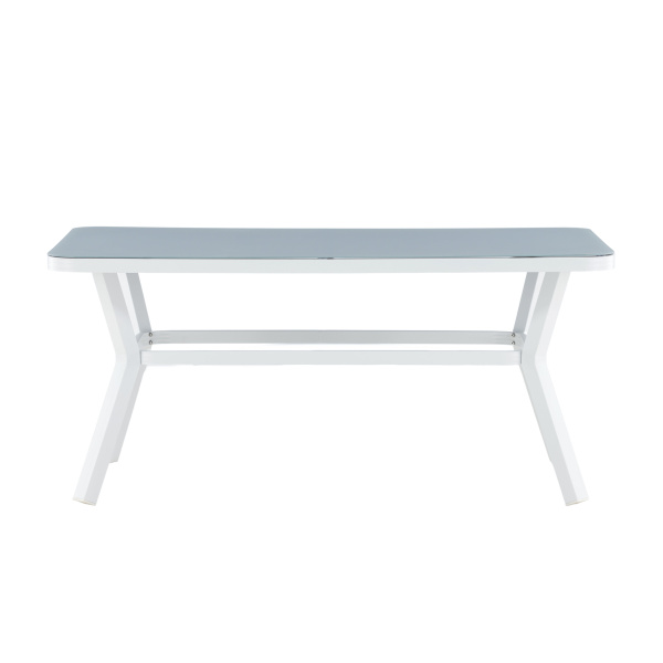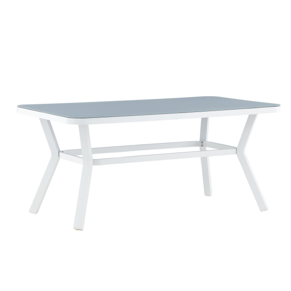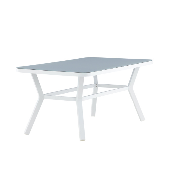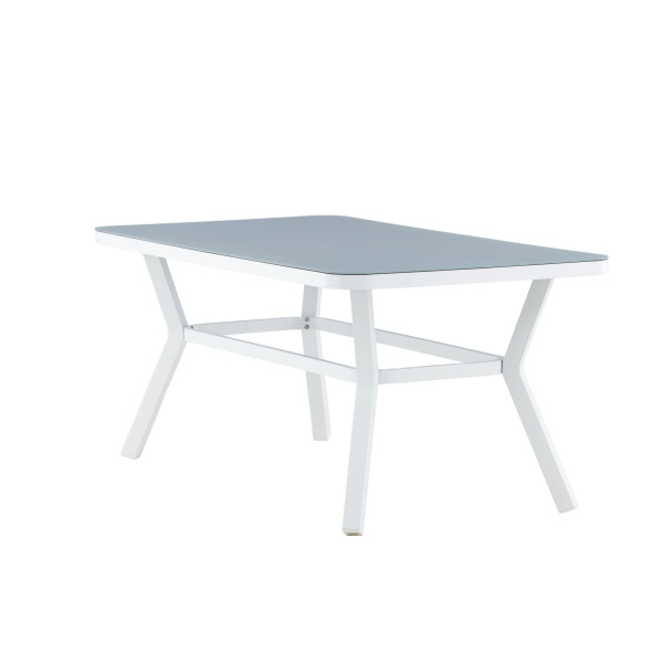 Virya – robust matbord med plats för hela familjen. Tillverkat med en bordsskiva i glas och ett underrede i vit aluminium. Ett matbord för utebruk som skapar en härlig känsla i uterummet såväl som i trädgården. Matcha med ett par matstolar i samma serie för att få den kompletta matgruppen!