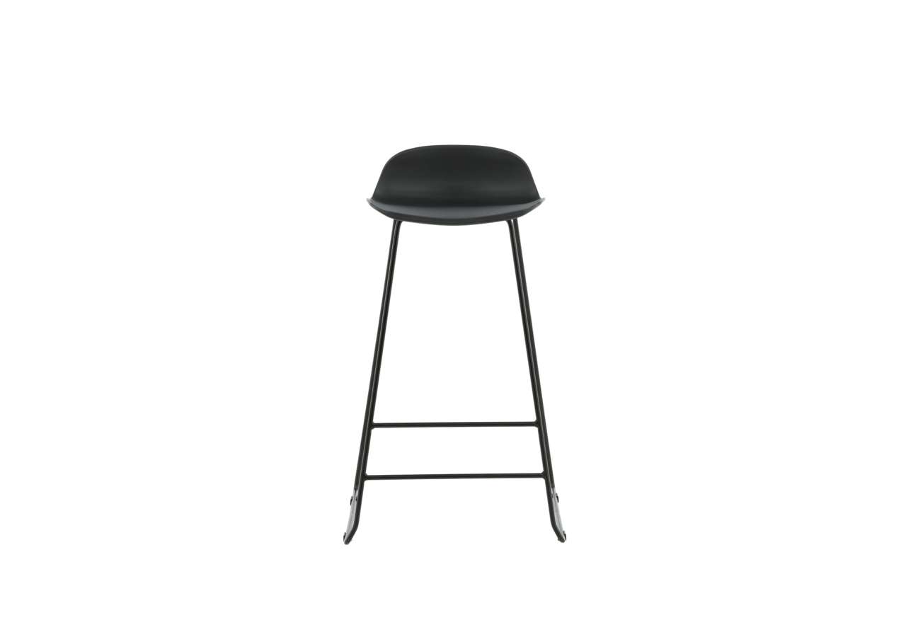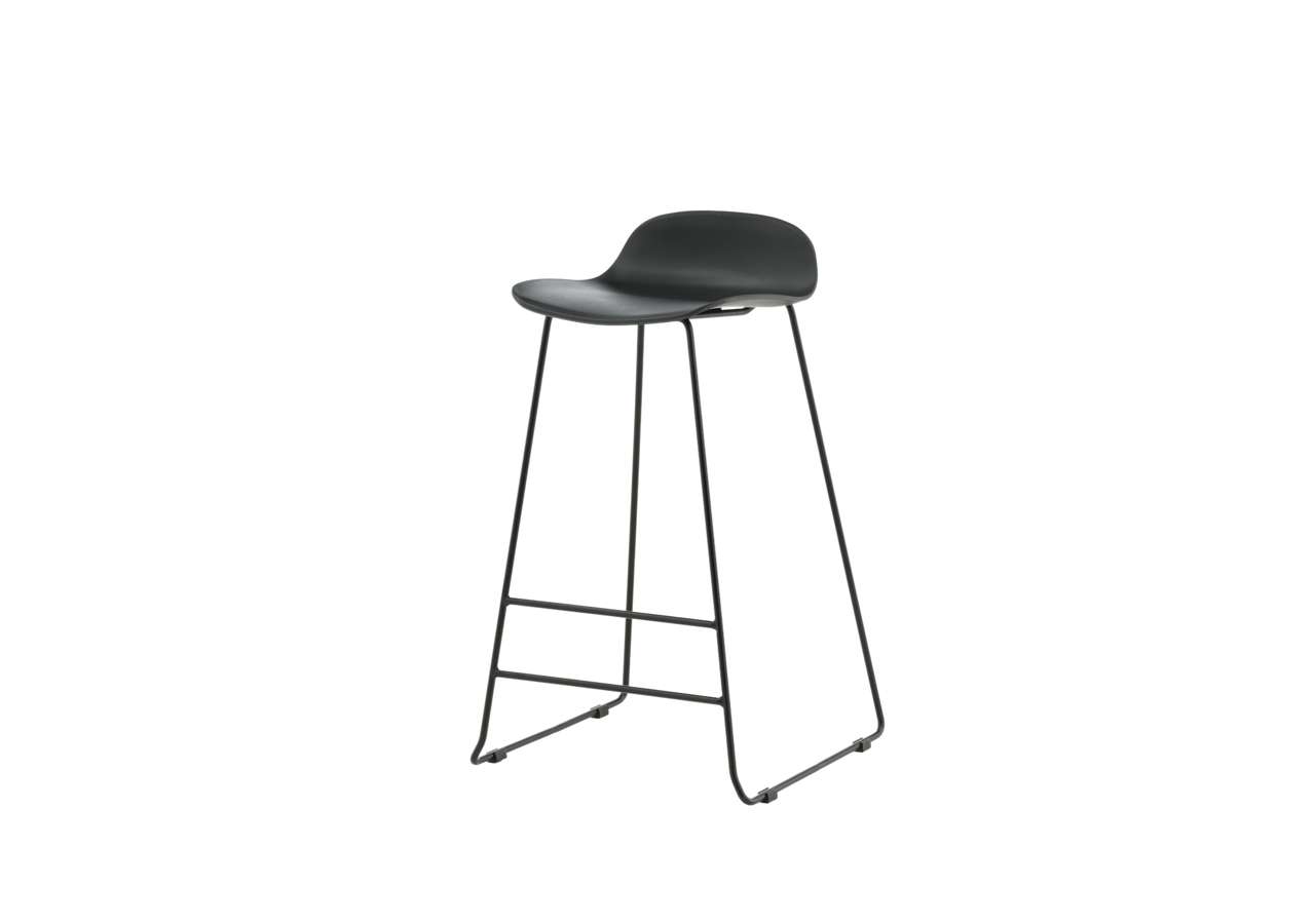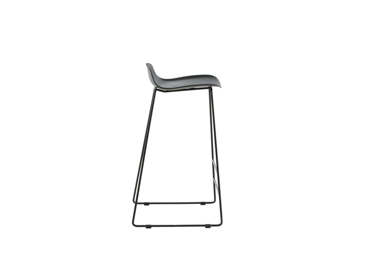 En stilren matstol i minimalistisk skandinavisk design från serien Wave kommer garanterat göra succé vid barskänken! Den här barstolen kommer i en tidlös svart kulör, med svart pulverlackerad metallställning, integrerat fotstöd för extra sittkomfort och låg rygg och sits i svart helgjuten plast. Lättare montering krävs.