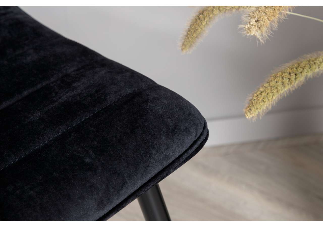 Tuff och sammetslen matstol som drar blickarna till sig och imponerar med både komfort och stil! Windu lyxstol har en genomgående svart design med raka nordiska former. Stolen är i svart sammet och polysterlinne och stolsbenen lätt utsvängda i järn. Matcha med ett pampigt matbord så får du en komplett matgrupp att pryda hemmets hjärta med!